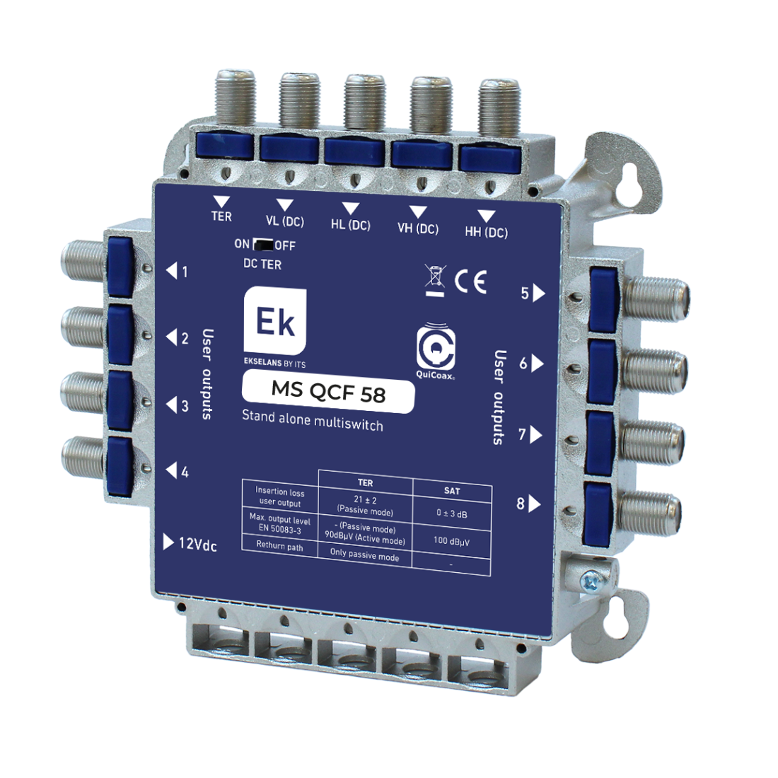 Multiswitch de 5 x 8 en cascada (intermedio, no final) 5 entradas (4 SAT + 1 TER), 8 salidas usuario.