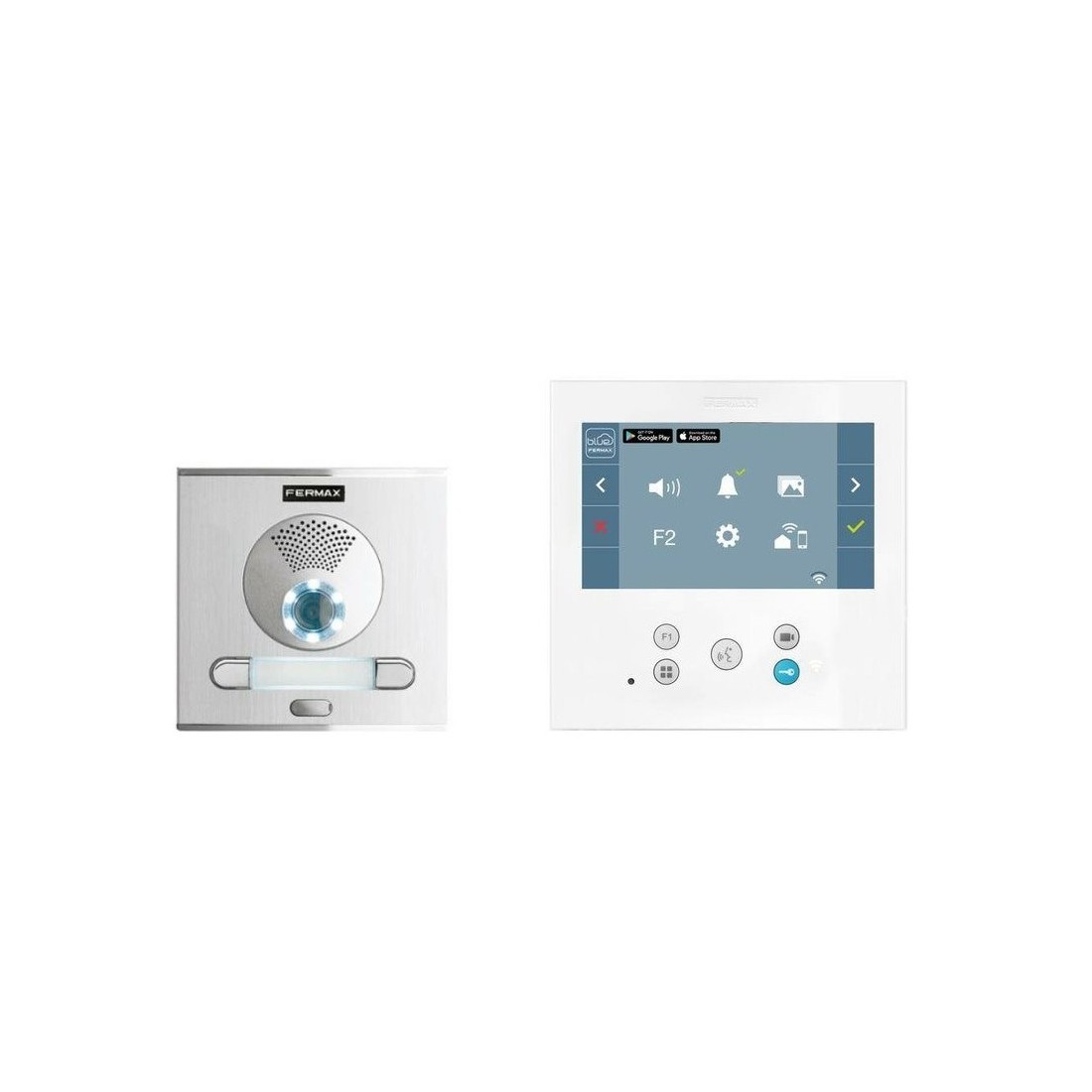 Gracias a la aplicación BLUE de Fermax, disponible de forma gratuita en Play Store y App Store, las funciones del videoportero se pueden gestionar directamente desde un móvil o tablet, para conectarte a tu hogar, estés donde estés. Al conectar tus monitores WiFi DUOX PLUS con la app BLUE, se abrirá un abanico de posibilidades. De todas ellas destacamos dos que serán clave: Desviar las llamadas del videoportero a tu móvil y abrir la puerta de casa a distancia.