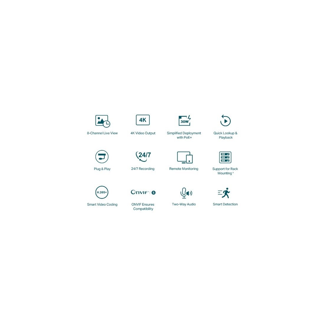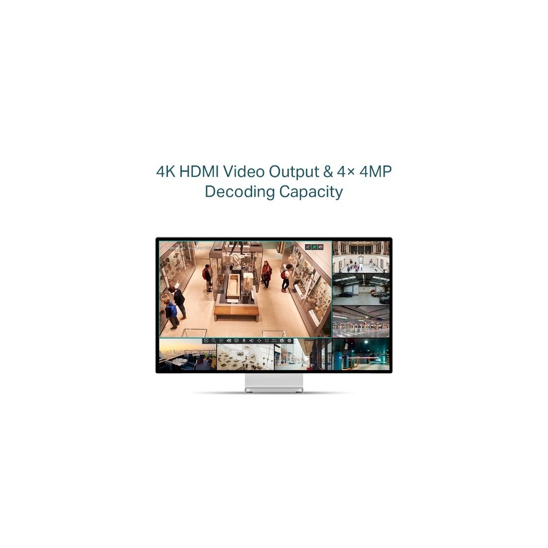 - Salida de Video HDMI 4K y Capacidad de Decodificación de 16MP. La definición de imagen de hasta 8MP y una pantalla de 8 canales garantizan capturar cada detalle, desde todos los ángulos 2 .