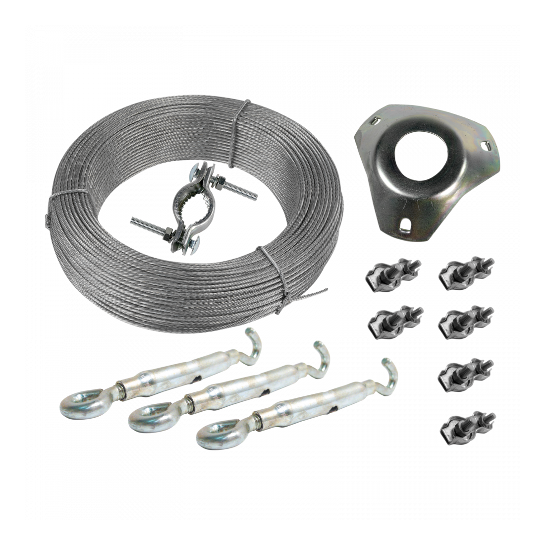 Kit montaje vientos para mástil 45mm (3 tensores/6 sujeta cables/25mts cable acero 2mm)