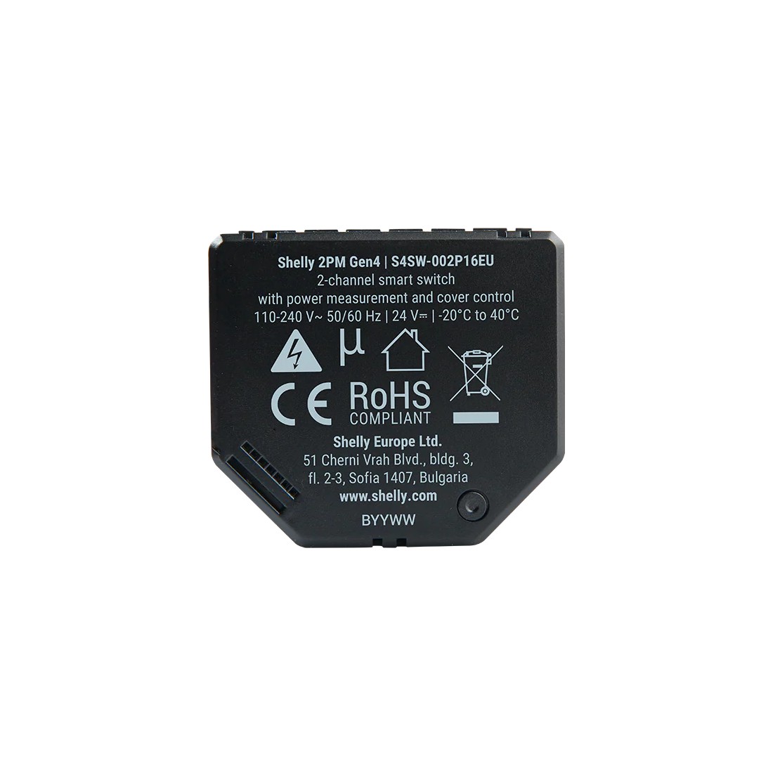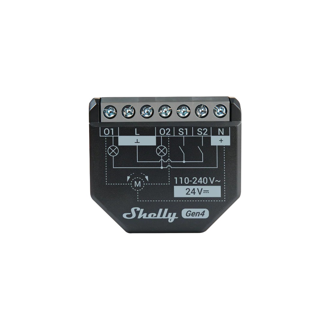 El Relé inteligente Shelly 2PM Gen4 es un dispositivo compacto de dos canales con medición de potencia integrada, diseñado para el control remoto de cargas eléctricas y motores de persianas, toldos y venecianas. Puede funcionar de forma autónoma en una red WiFi local o integrarse en sistemas de automatización del hogar mediante servicios en la nube.