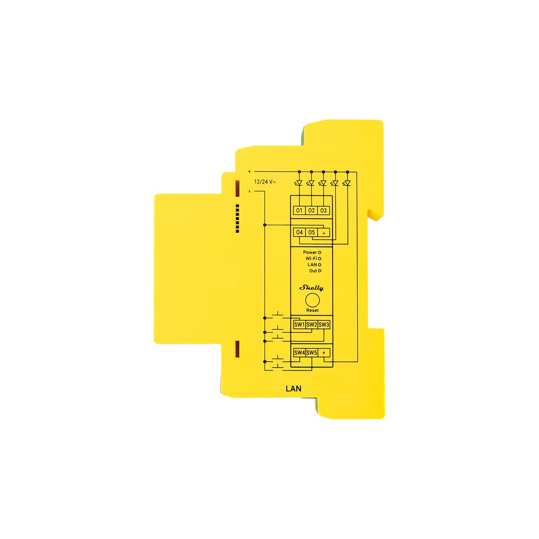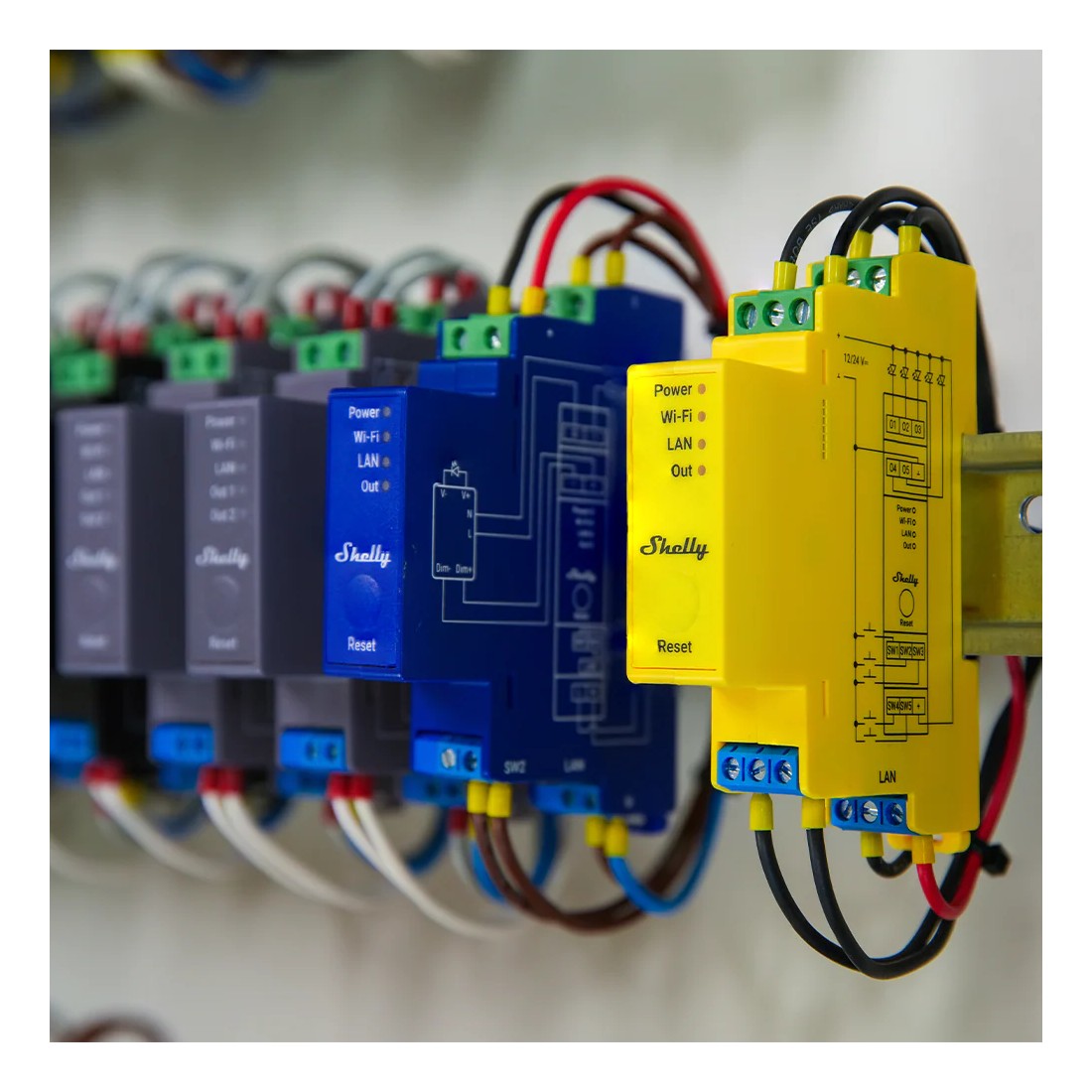 Controlador iluminación Shelly Pro RGBWW PM Atenuador inteligente profesional de 5 canales para iluminación LED Montaje en carril DIN para cuadros eléctricos Control RGB y blanco (CCT) con múltiples perfiles de iluminación 5 entradas para interruptor, pulsador o señal analógica Conectividad WiFi 2.4 GHz, Ethernet LAN y Bluetooth 4.2 Integración con MQTT, Webhooks, API HTTP y sistemas domóticos Control remoto sin necesidad de HUB Alimentación 12 a 24 V DC