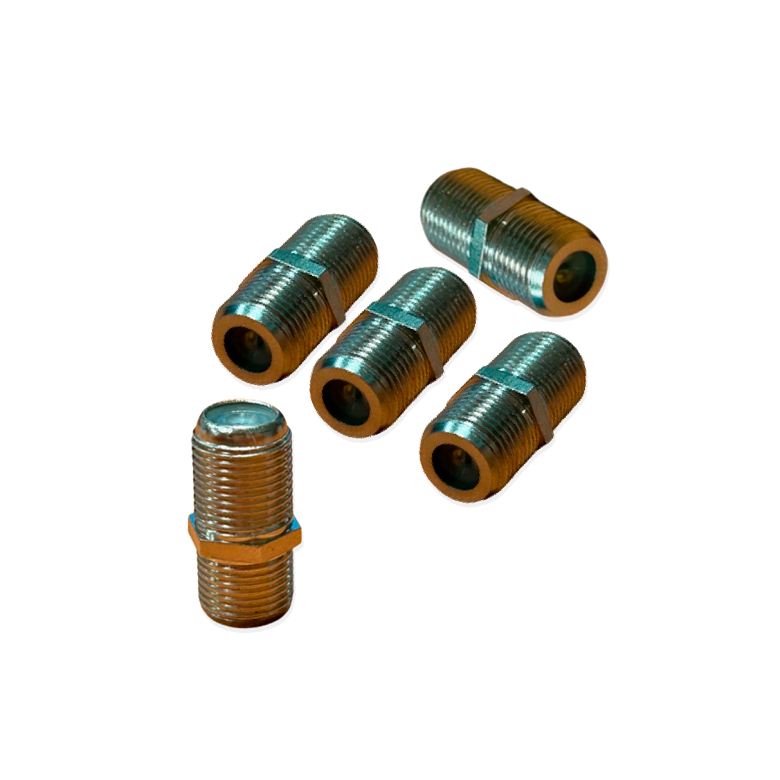 - Tiene dos conectores F hembra en los extremos, permitiendo la conexión de dos cables con conectores F macho.