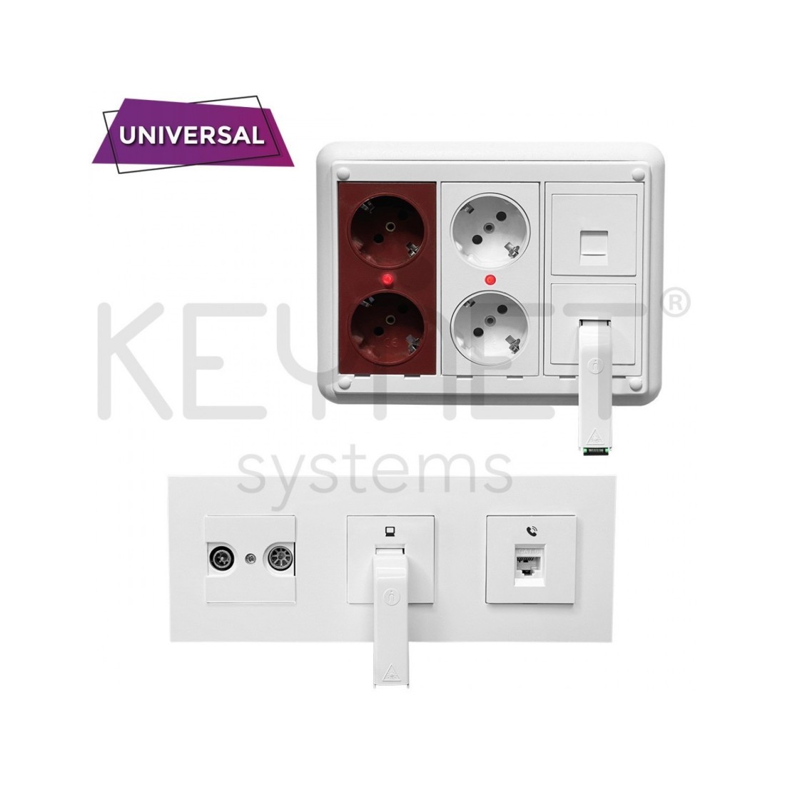 Compatible con la mayoría de las bases keystone de mecanismos eléctricos y de telecomunicaciones