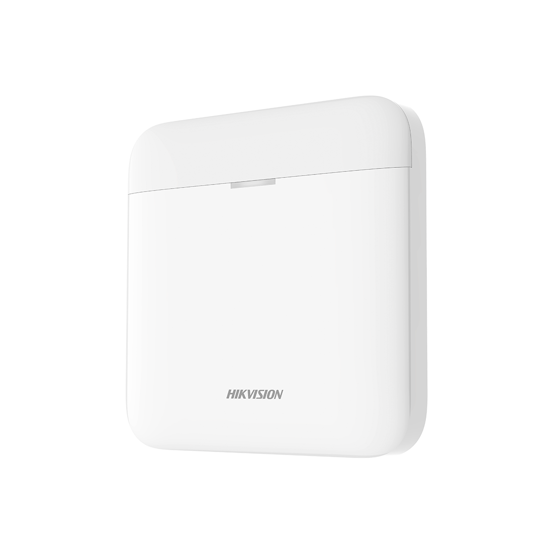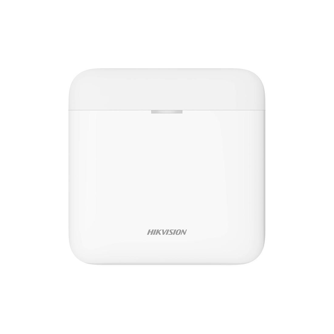 Repetidor inalámbrico Hikvision DS-PR1-WE(B) Accesorio para sistemas de intrusión AX PRO Repetidor de señal para ampliar cobertura RF del sistema Comunicación inalámbrica bidireccional 868 MHz Protocolos Tri-X y Cam-X Alcance hasta 1.6 km en espacio abierto Emparejamiento automático hasta 8 dispositivos Cifrado AES-128 y salto de frecuencia Batería interna con autonomía hasta 35 horas Alimentación 100-240 VAC Indicadores LED de estado Montaje en pared