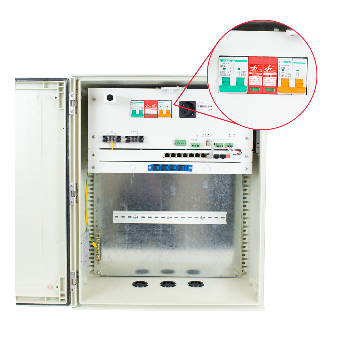 Armario de Conexiones Safire SF-BOX0812V-UPS-IP55 - Poliester, Switch 8P, 3 Salidas 12V, UPS, IP55