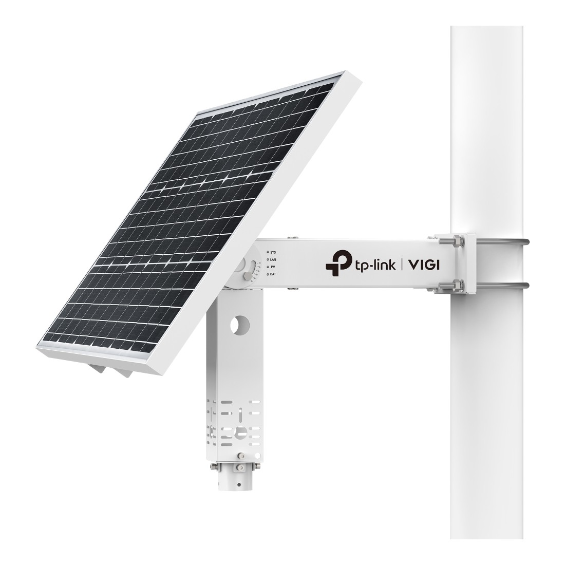 El Sistema solar VIGI SP9030 es un sistema de alimentación diseñado para suministrar energía continua a equipos de exterior como cámaras y dispositivos de red (por ejemplo, puentes inalámbricos o puntos de acceso). Integra un panel fotovoltaico de 90 W y una batería de litio de 31.2 Ah a 10.8 V, con control de carga MPPT y supervisión del estado del sistema.