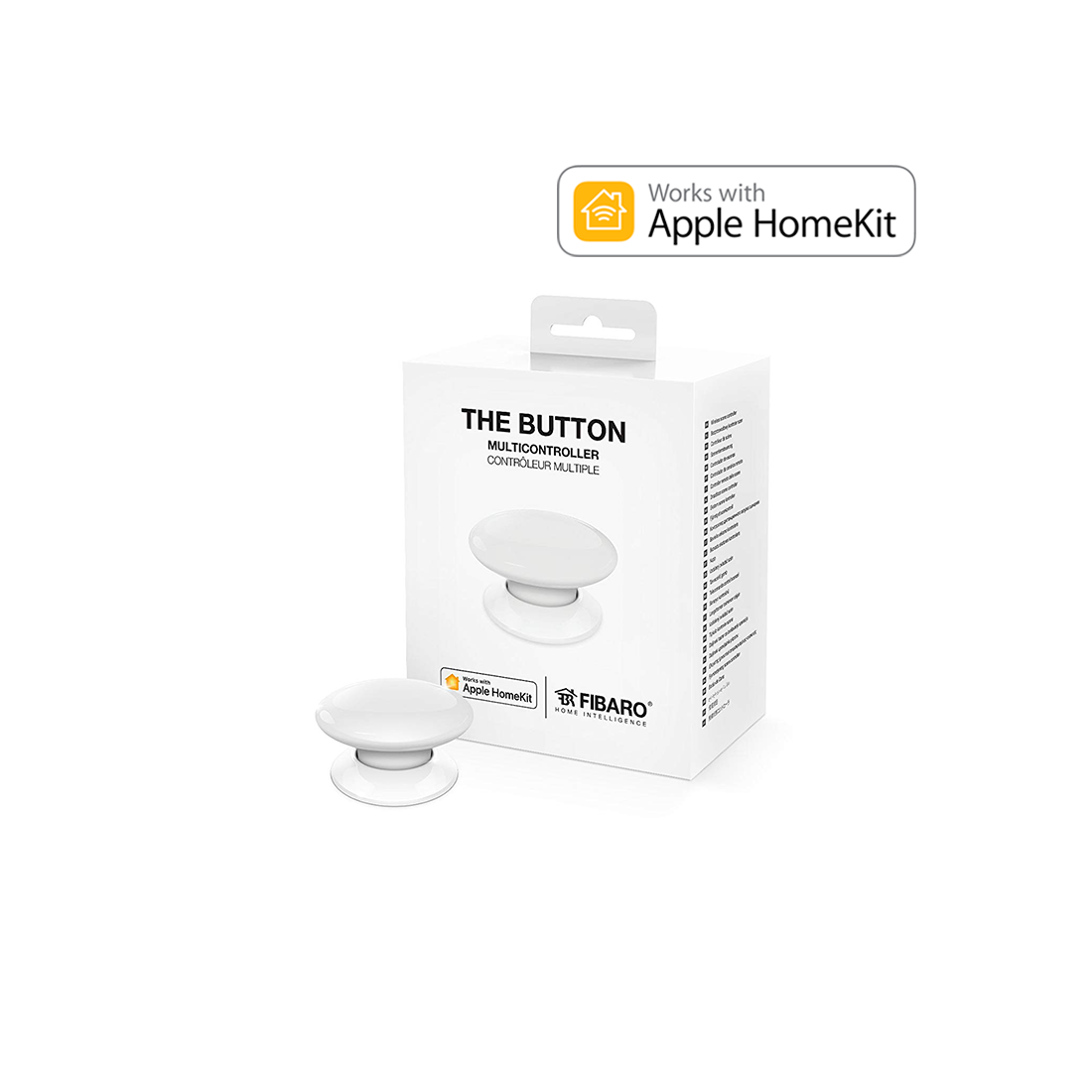 FIBARO Button es un controlador inalámbrico compacto, compatible con HomeKit y alimentado por batería que utiliza la tecnología de baja energía Bluetooth®.