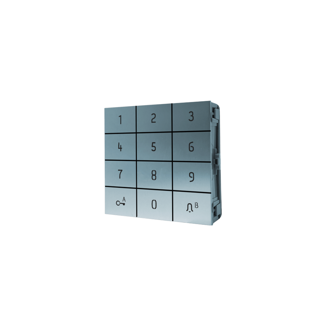 Compatible con todos los sistemas. Se puede utilizar como módulo para llamar directamente al usuario, si se conoce su código, o para la función de control de accesos, con activación de los relés a bordo o de las salidas de los módulos audio o audio/vídeo y de los actuadores de la instalación. Los códigos de acceso pueden ser permanentes (siempre válidos), de consumo (válidos para un cierto número de usos) o asociados a una fecha de validez.