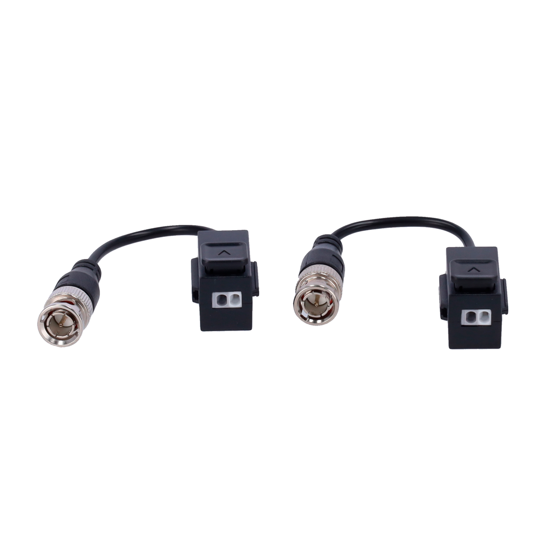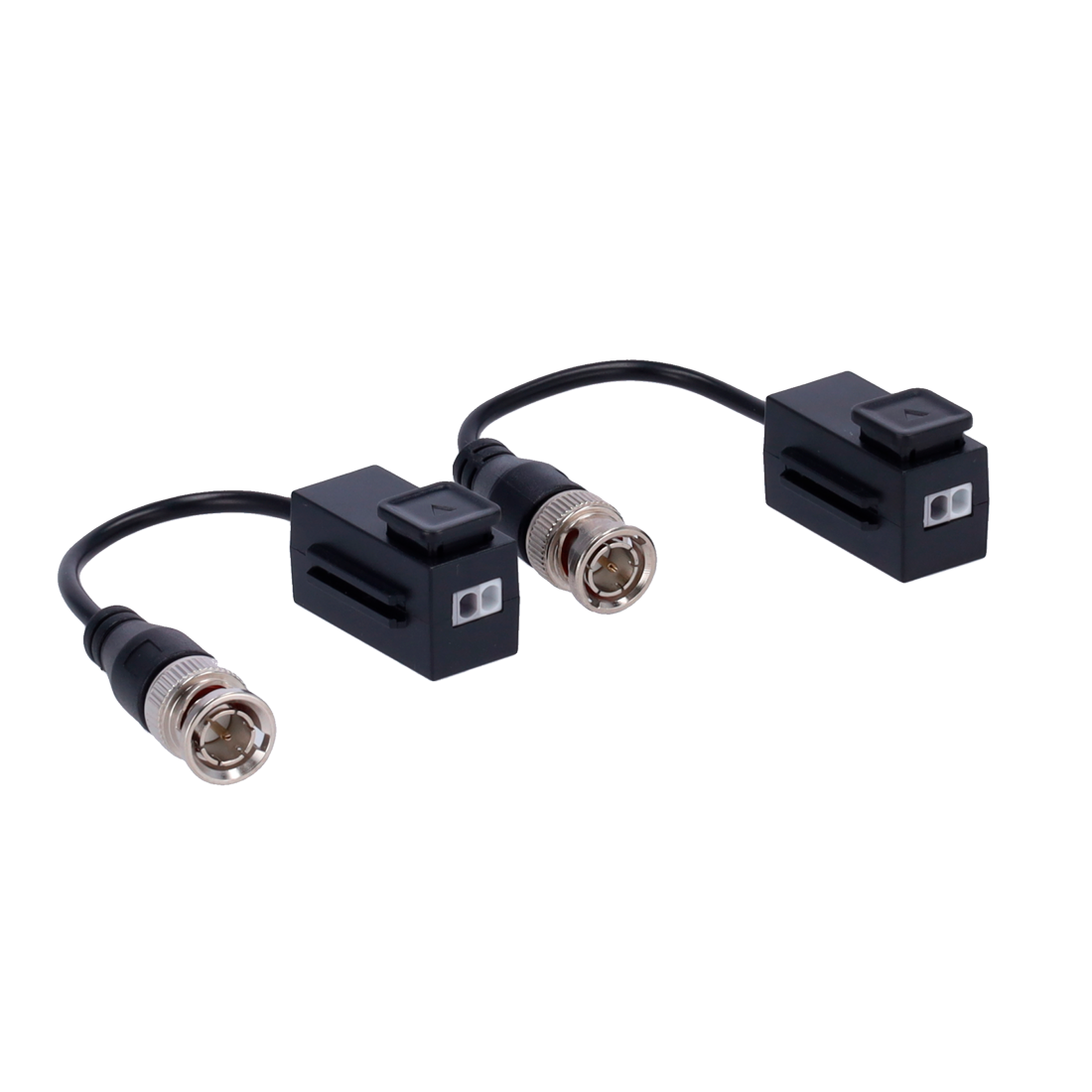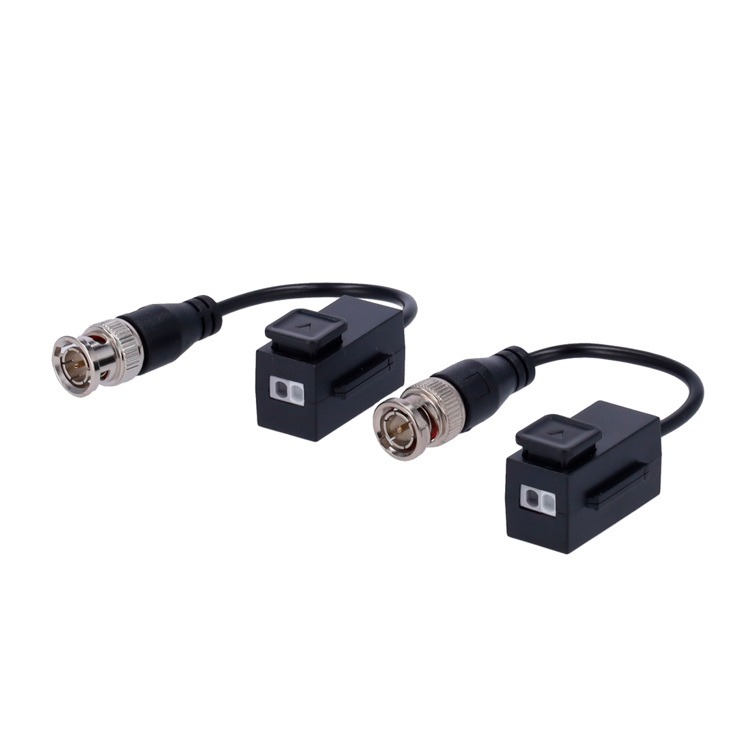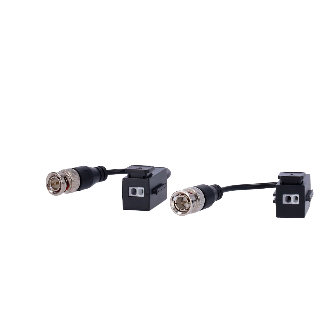 Kit de dos transceptores pasivos Safire BA617P-HAC-B para video y alimentacion. Soporta altas resoluciones de 2MP, 5MP y hasta 8MP (4K) en tecnologias HDCVI, TVI y AHD. Transmision combinada de señal y energia sobre cable UTP Cat5e o Cat6. Diseño con latiguillo BNC para facilitar la instalacion en grabadores y camaras. Proteccion integrada contra sobretensiones y descargas. Referencia: BA617P-HAC-B.