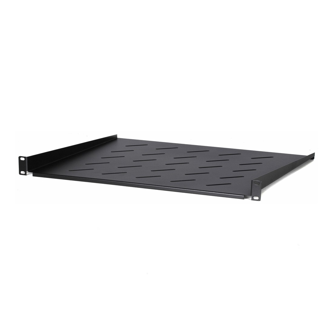 Fabricada en acero SPCC, soporta una carga máxima de 15 kg y cuenta con fijación frontal. Su fondo útil de 405 mm permite la instalación de equipos no rackeables, manteniendo compatibilidad con racks estándar de 19 pulgadas.