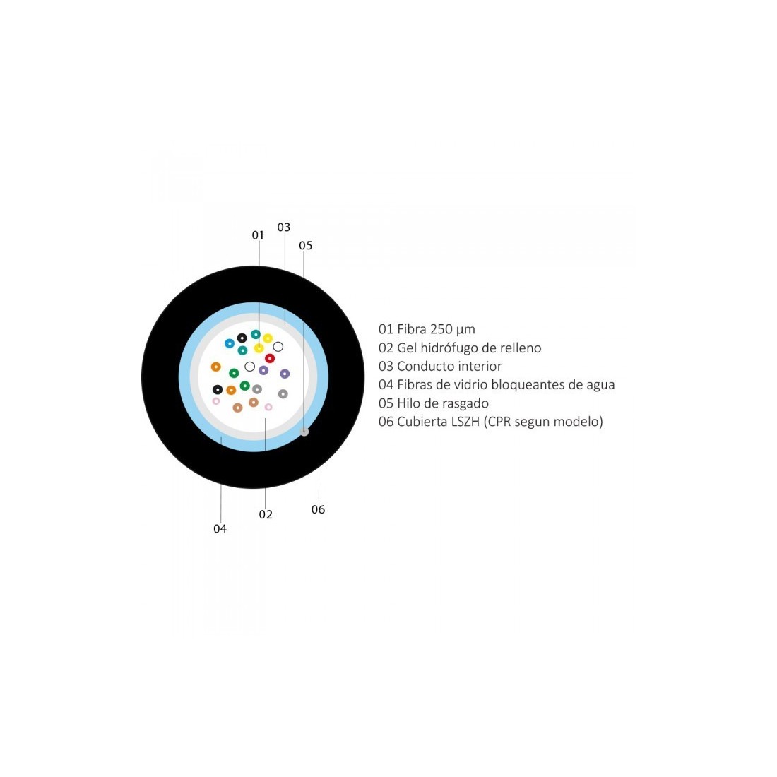 Cable 16F G657A2, monomodo, holgada, CPR-Cca, LSZH, para exterior (PE negra). Bobina 2000mts/Corte