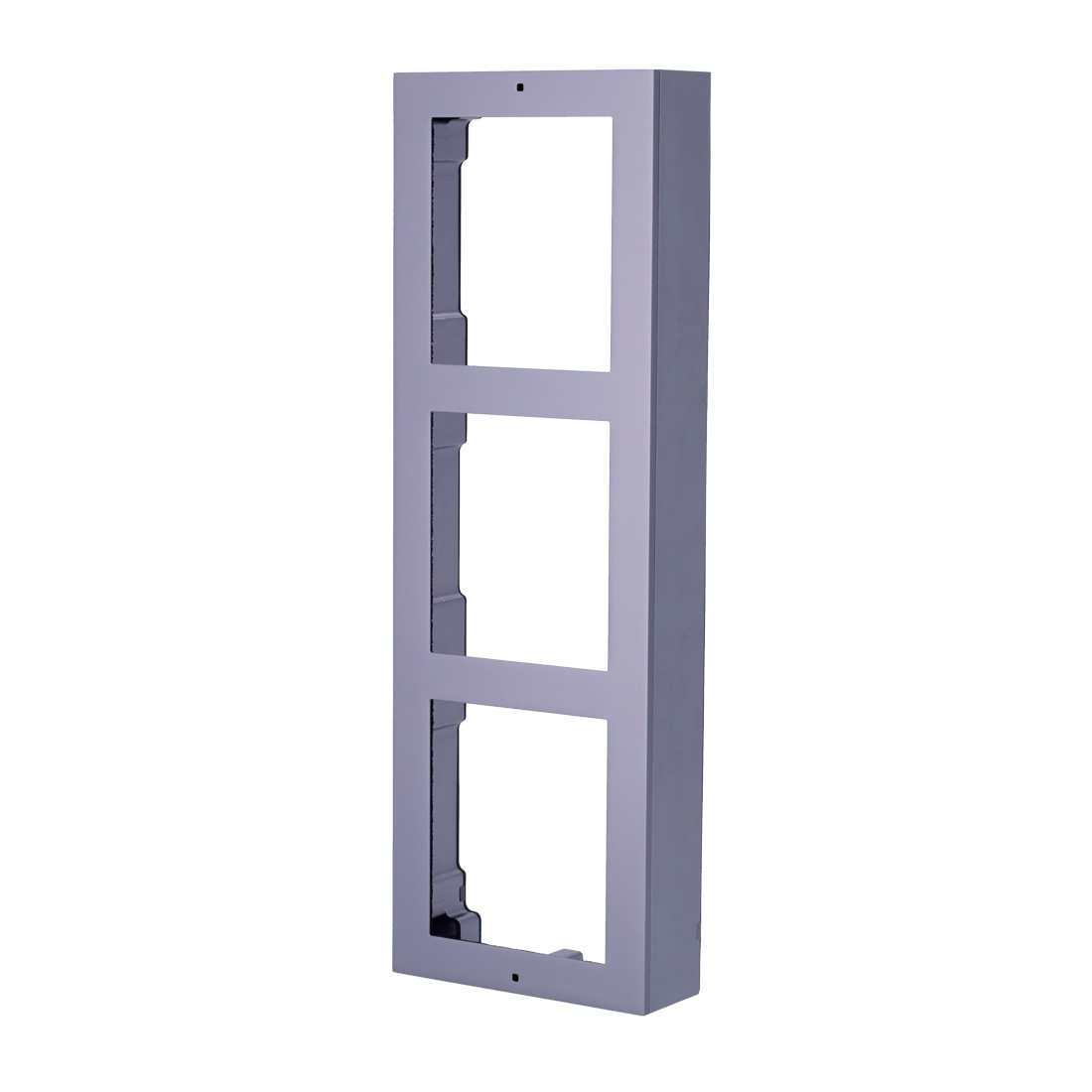 Caja de registro en superficie Hasta 3 módulos Específica para videoporteros Hikvision Compatible con módulos Hikvision Caja fabricada en aluminio de aviación Medidas: 321 (Al) x 107 (An) x 32.7 (Fo) mm