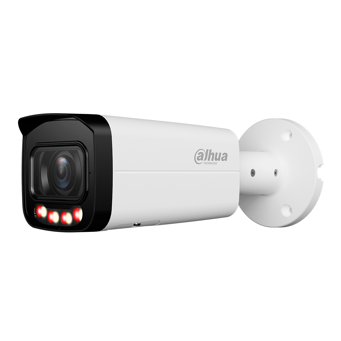 Camara IP Bullet Dahua DH-IPC-HFW3449T1P-ZAS-PV-27135 WizSense TiOC S5 Sensor CMOS 1/2.7 4MP. Resolucion max. 2688x1520 a 25/30 fps Compresion H.265, WDR 120 dB, 3D NR, BLC, HLC, EIS Lente varifocal motorizada 2.7 mm-13.5 mm, apertura F1.0 Disuasion activa luz roja/azul y sirena, microfonos duales, altavoz Proteccion perimetral (Tripwire, Intrusion) con clasificacion vehicular y humana Smart Dual Light con IR hasta 50 m y luz calida hasta 40 m. SMD 4.0. Alarma 1/1, Audio 1/1, ranura Micro SD 256 G. Proteccion IP67, PoE. Referencia fabricante: DH-IPC-HFW3449T1P-ZAS-PV-27135-S5
