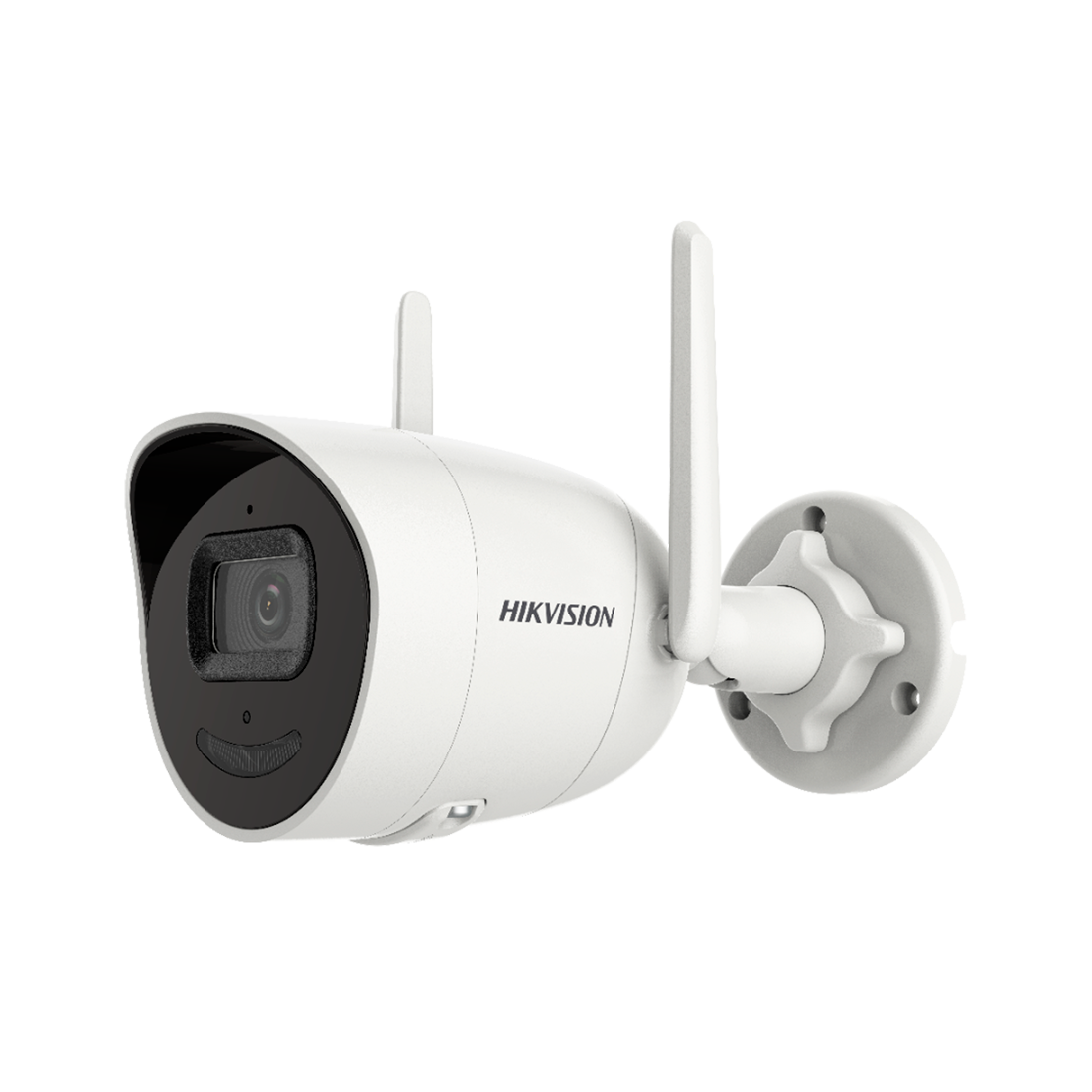 Hikvision Cámara Bullet IP gama Wi-Fi Resolución 4 Megapíxel (2560x1440) Lente 2.8 mm | Wi-Fi IEEE802.11b/g/n IR alcance 30 m | Micrófono y altavoz integrados Ranura para tarjeta MicroSD hasta 256 GB *Cloud P2P sólo compatible realizando conexión por LAN