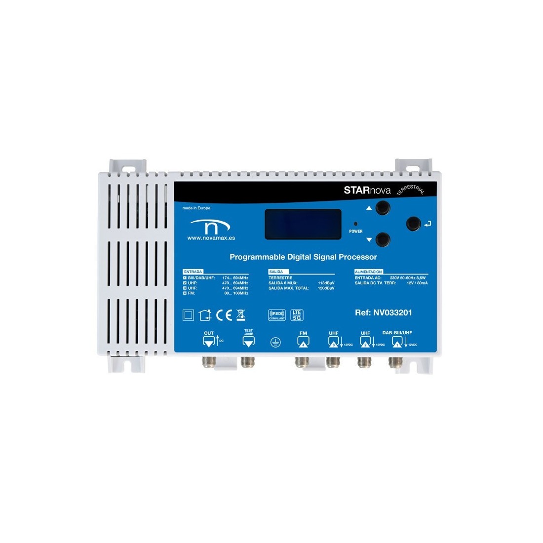 Cabecera multibanda compacta programable para filtrar, convertir y ecualizar digitalmente canales DVB-T/T2. El amplificador incorporado con salida ajustable permite el uso en comunidades