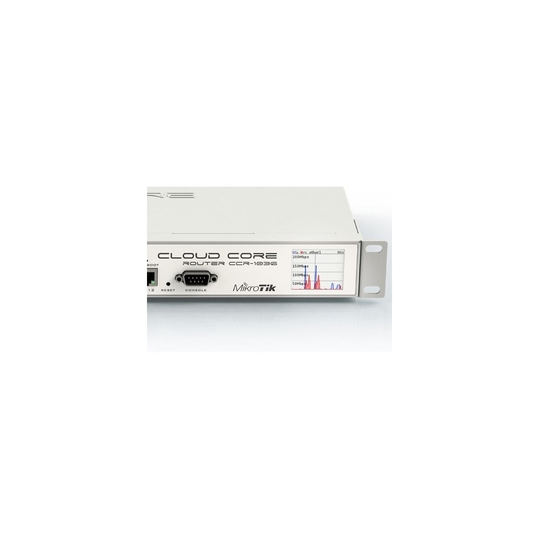 CCR1016-12G es un enrutador de grado industrial con una CPU de 16 núcleos de vanguardia. Si necesita muchos millones de paquetes por segundo, Cloud Core Router es su mejor opción. La unidad está equipada con 12 puertos Gigabit Ethernet y pantalla táctil LCD a color.