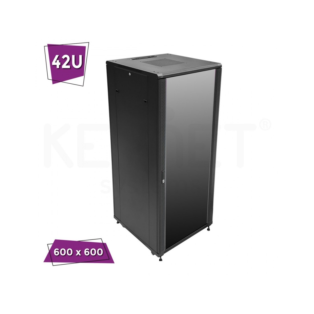 Puerta frontal cristal + trasera doble rejilla 4 ruedas + patas elevadoras Carga estática 800Kg Guías verticales en frontal y trasera ajustables