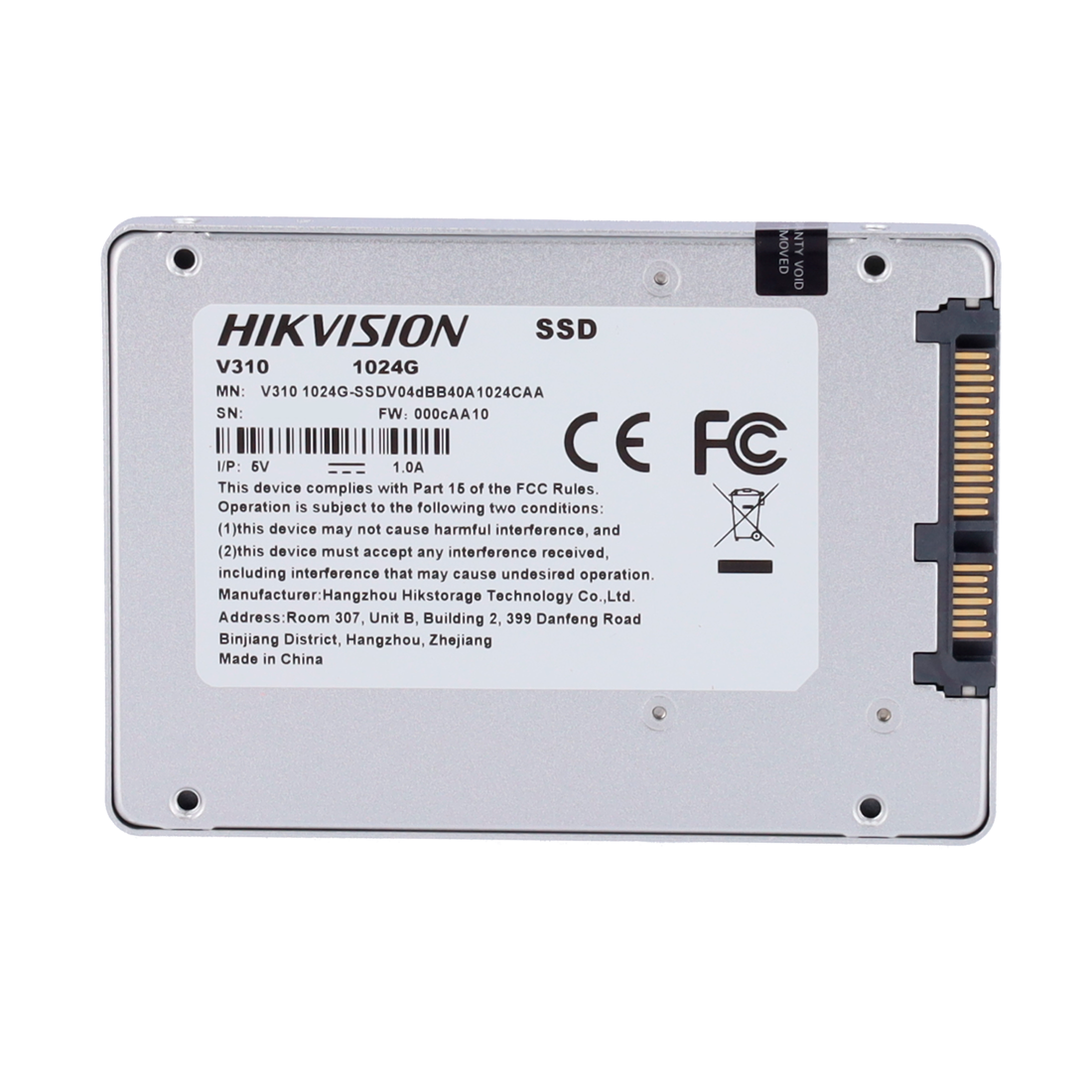 Disco duro SSD Hikvision HS-SSD-V310-1024G Capacidad 1024GB 2.5" SATAIII 6Gb/s Especial para CCTV con uso 24.7 Lectura 470Mb/s y escritura 520Mb/s NAND 3D TLC con TBW 1364TB y MTBF 1.500.000h