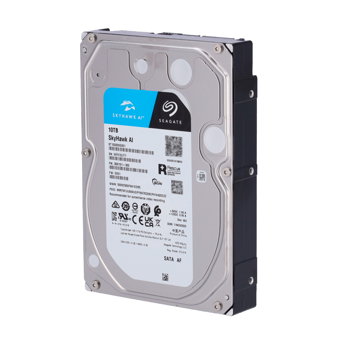 Disco duro Seagate Skyhawk AI Capacidad 10 TB Interfaz SATA 6 Gb/s Hasta 32 transmisiones de inteligencia artificial Modelo ST10000VE001 Especial para Videograbadores de red (NVR)