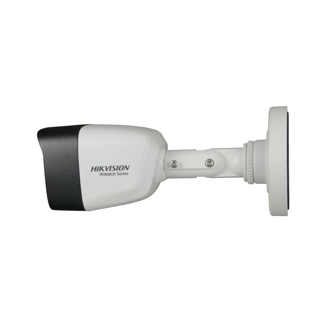 Cámara bullet HiWatch HWT-B181-M Resolución 8 MP 3480 x 2160 con sensor High Performance CMOS Salida de vídeo 4 en 1 HDTVI HDCVI AHD y CVBS por BNC Lente fija 2.8 mm con iluminación EXIR 2.0 IR hasta 30 m Funciones OSD WDR 120 dB BLC HLC 3DNR y Smart IR Carcasa metálica con protección exterior IP66