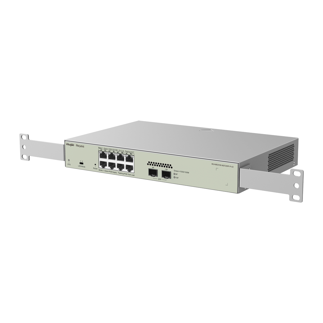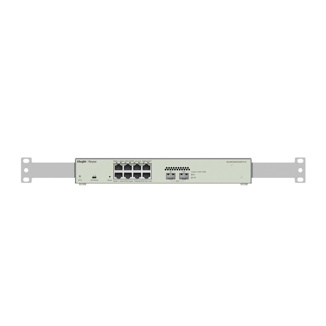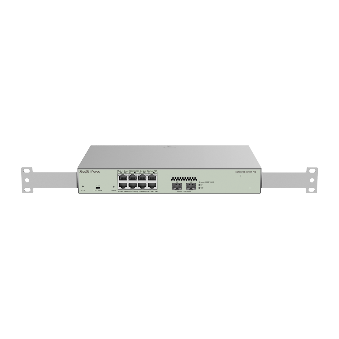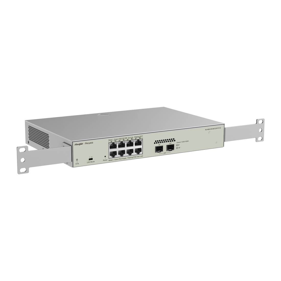 Reyee Switch PoE Cloud Capa 2 8 puertos PoE+ Gigabit+ 2 SFP Gigabit 30W por puerto 802.3af/at / Máximo 125W Static LAG/DHCP Snoop/IGMP Snoop/Port Mirror VLAN/Port Isolation/STP/RSTP/ACL/QoS/LACP/SNMP Enrackable