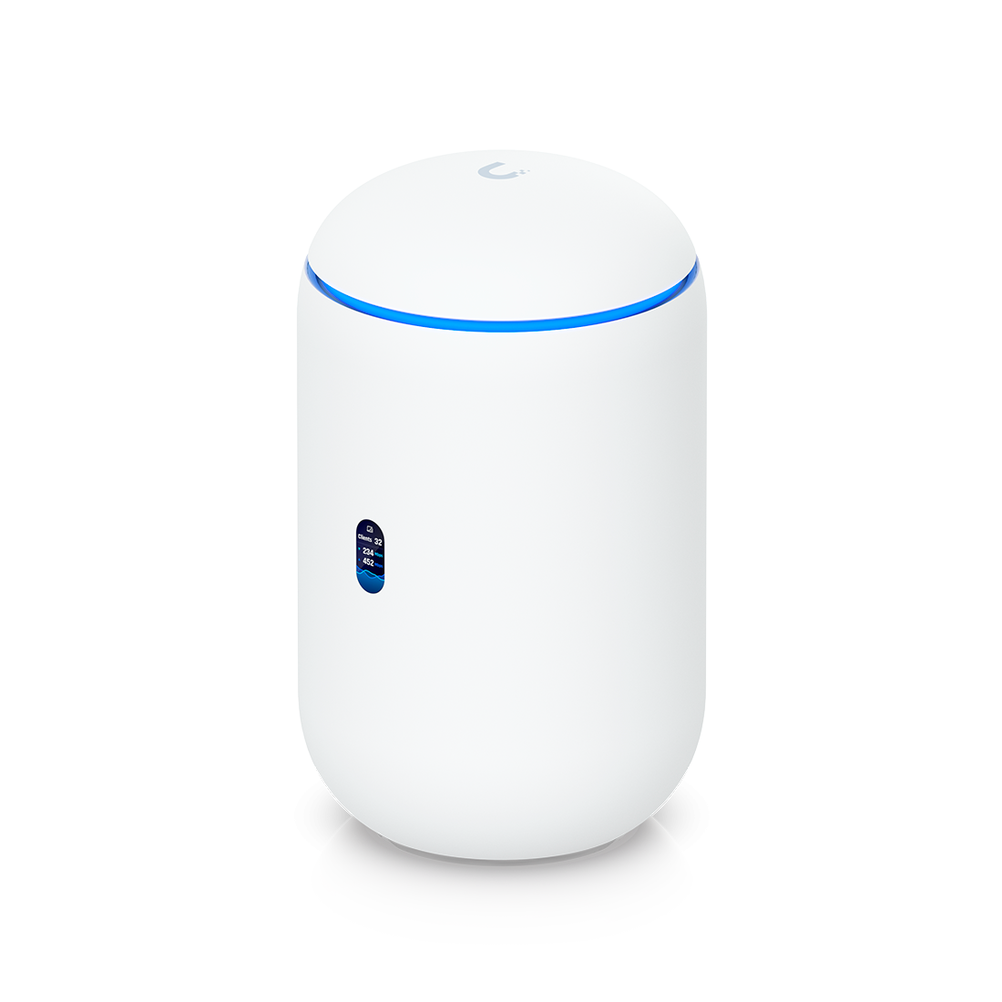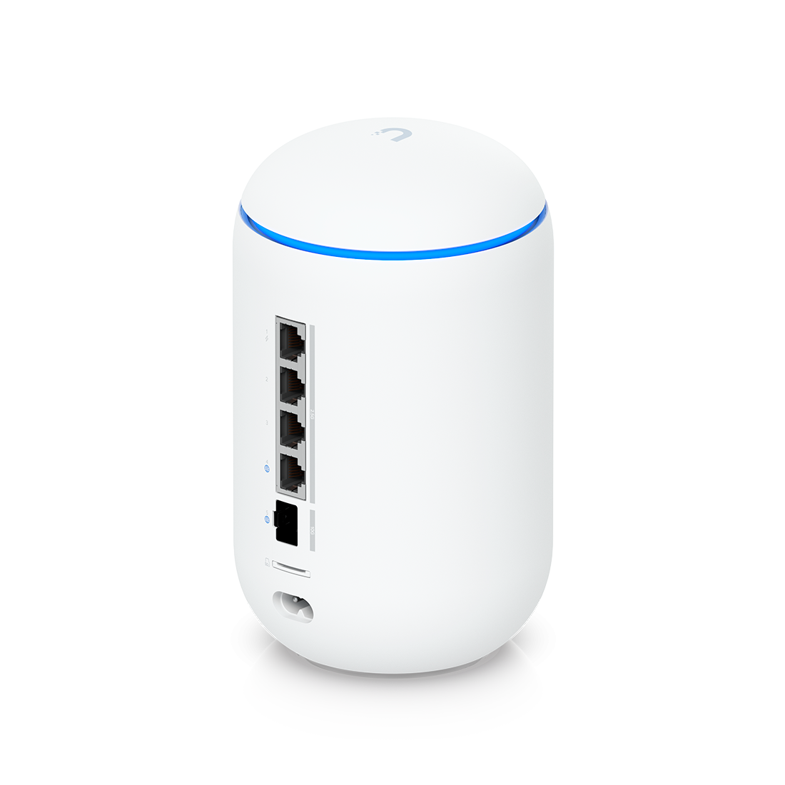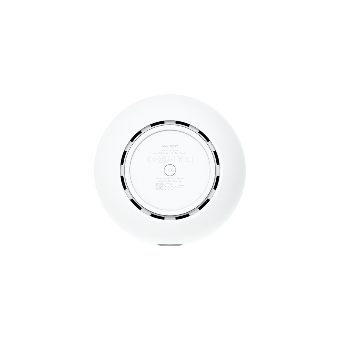 Router WiFi 7 Ubiquiti UniFi Dream Router UDR7 Quad-core ARM Cortex-A53 1.5GHz, RAM 3GB WiFi 7 tri-band: 5.7Gbps (6GHz) + 4.3Gbps (5GHz) + 688Mbps (2.4GHz) Puertos: 1x 10G SFP+, 4x 2.5G/1G/100M RJ45 (1 PoE), PoE budget 15.4W IDS/IPS throughput 2.3Gbps, firewall L7, VPN (WireGuard, IPsec, OpenVPN, L2TP) Gestión unificada UniFi: Network, Protect, Access, Talk, Connect Almacenamiento NVR integrado microSD 64GB, ranura ampliación microSD Dimensiones Ø110×184.1 mm, peso 1.1 kg Referencia fabricante: UDR7