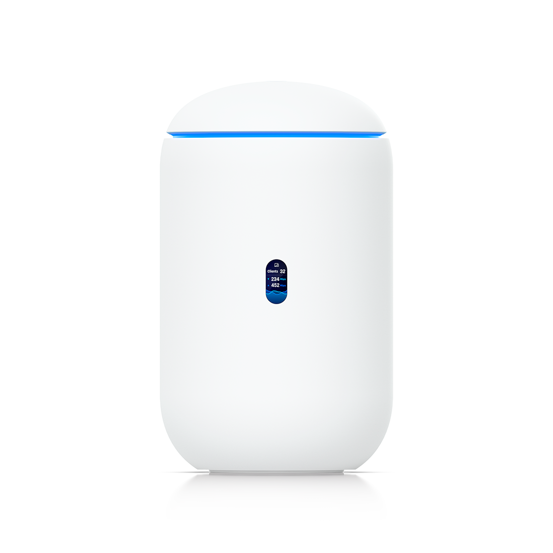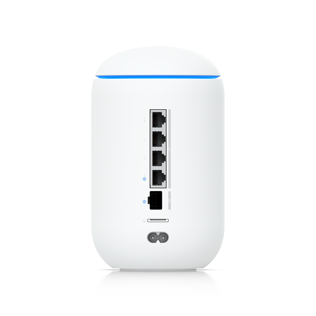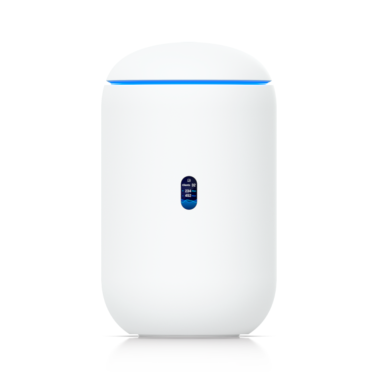 Router WiFi 7 Ubiquiti UniFi Dream Router UDR7 Quad-core ARM Cortex-A53 1.5GHz, RAM 3GB WiFi 7 tri-band: 5.7Gbps (6GHz) + 4.3Gbps (5GHz) + 688Mbps (2.4GHz) Puertos: 1x 10G SFP+, 4x 2.5G/1G/100M RJ45 (1 PoE), PoE budget 15.4W IDS/IPS throughput 2.3Gbps, firewall L7, VPN (WireGuard, IPsec, OpenVPN, L2TP) Gestión unificada UniFi: Network, Protect, Access, Talk, Connect Almacenamiento NVR integrado microSD 64GB, ranura ampliación microSD Dimensiones Ø110×184.1 mm, peso 1.1 kg Referencia fabricante: UDR7