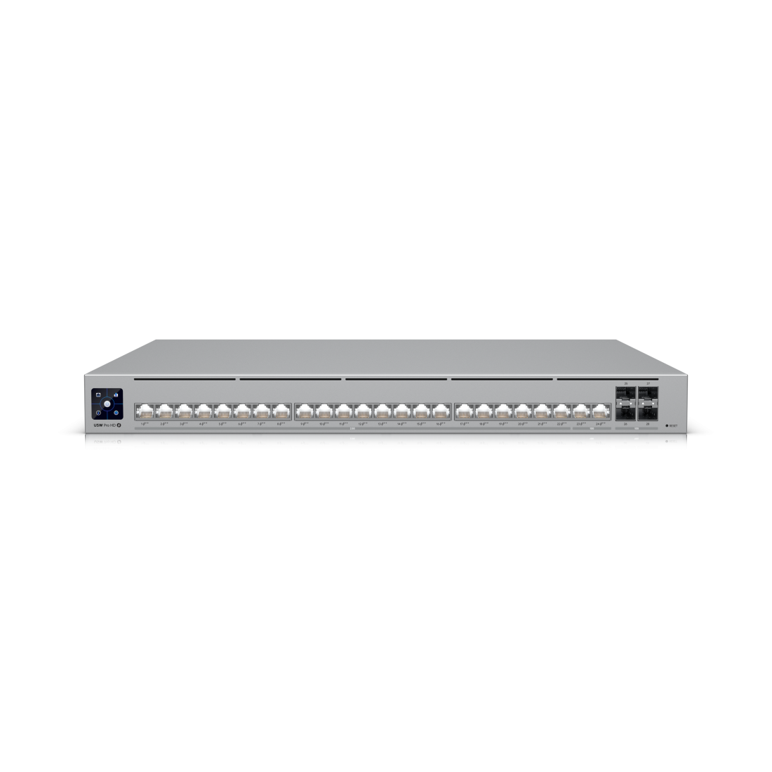 El switch PoE++ 2.5G Ubiquiti USW-Pro-HD-24-PoE es un equipo de alto rendimiento diseñado para redes profesionales multigigabit. Incorpora 22 puertos 2.5 GbE PoE++ y 2 puertos 10 GbE RJ45 PoE++, permitiendo alimentar dispositivos de alta demanda como puntos de acceso, cámaras o sistemas AV.