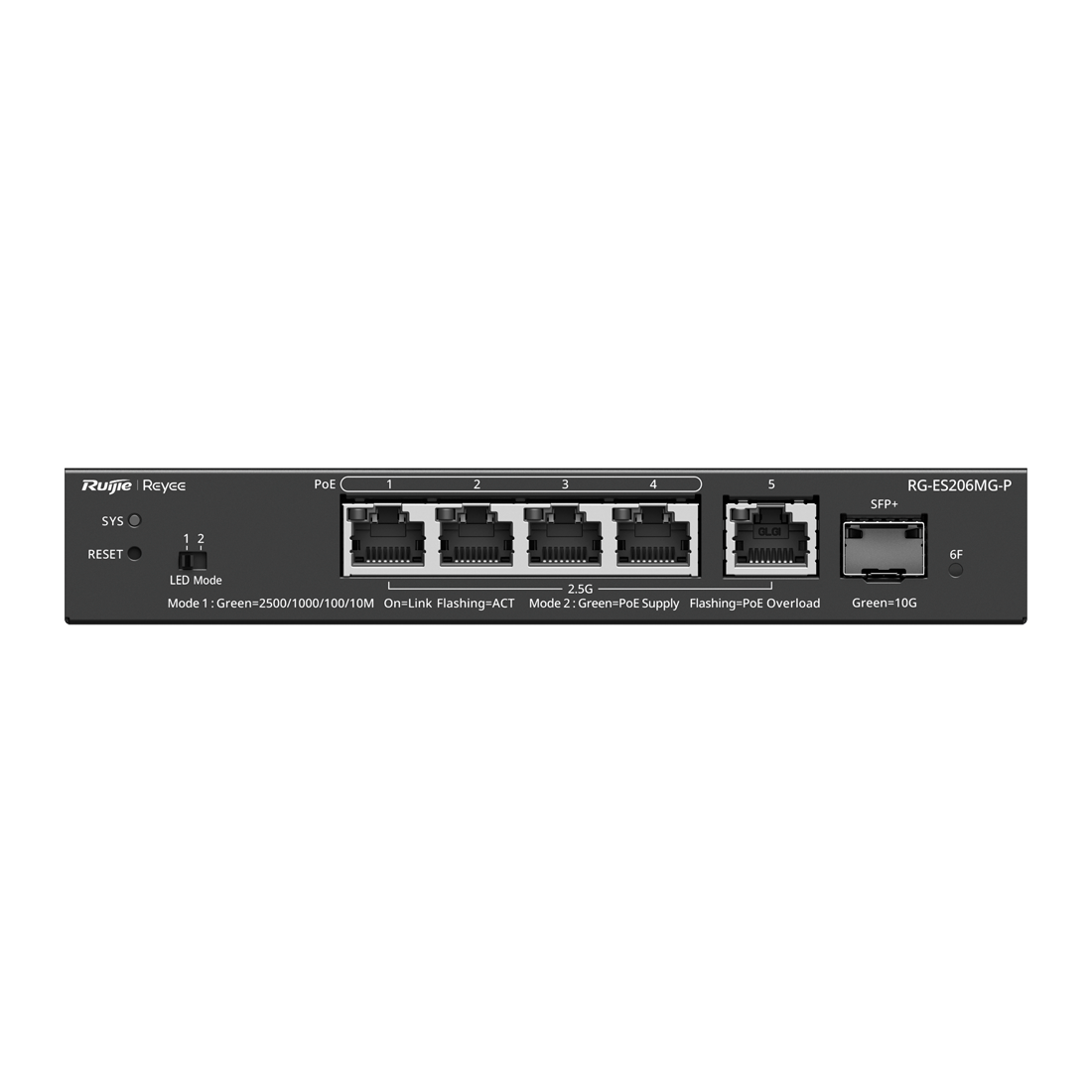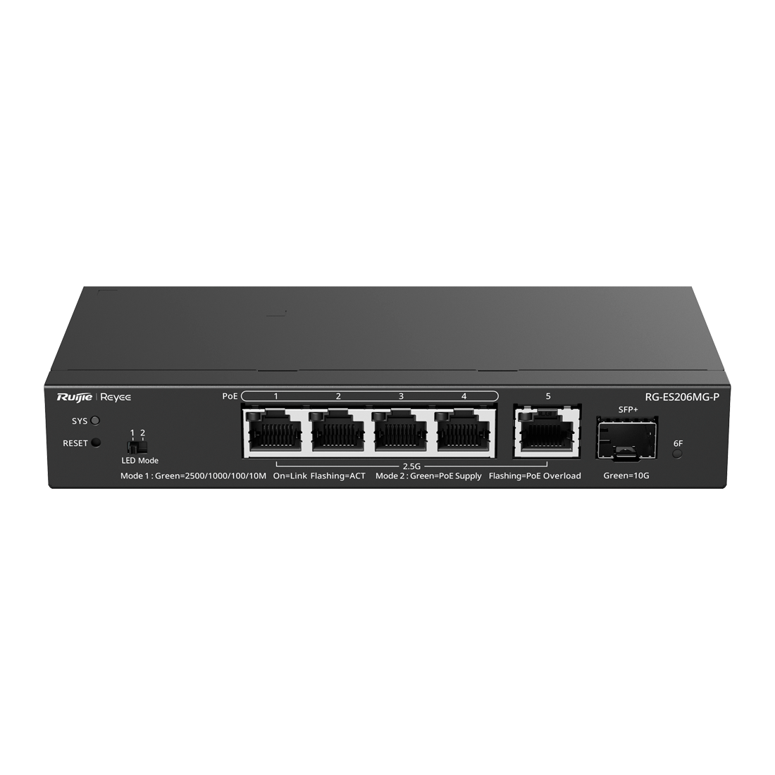 Switch gestionable Reyee RG-ES206MG-P - 5 puertos 2.5GbE, 4 PoE+, 1 SFP+ 10G, 70W, L2