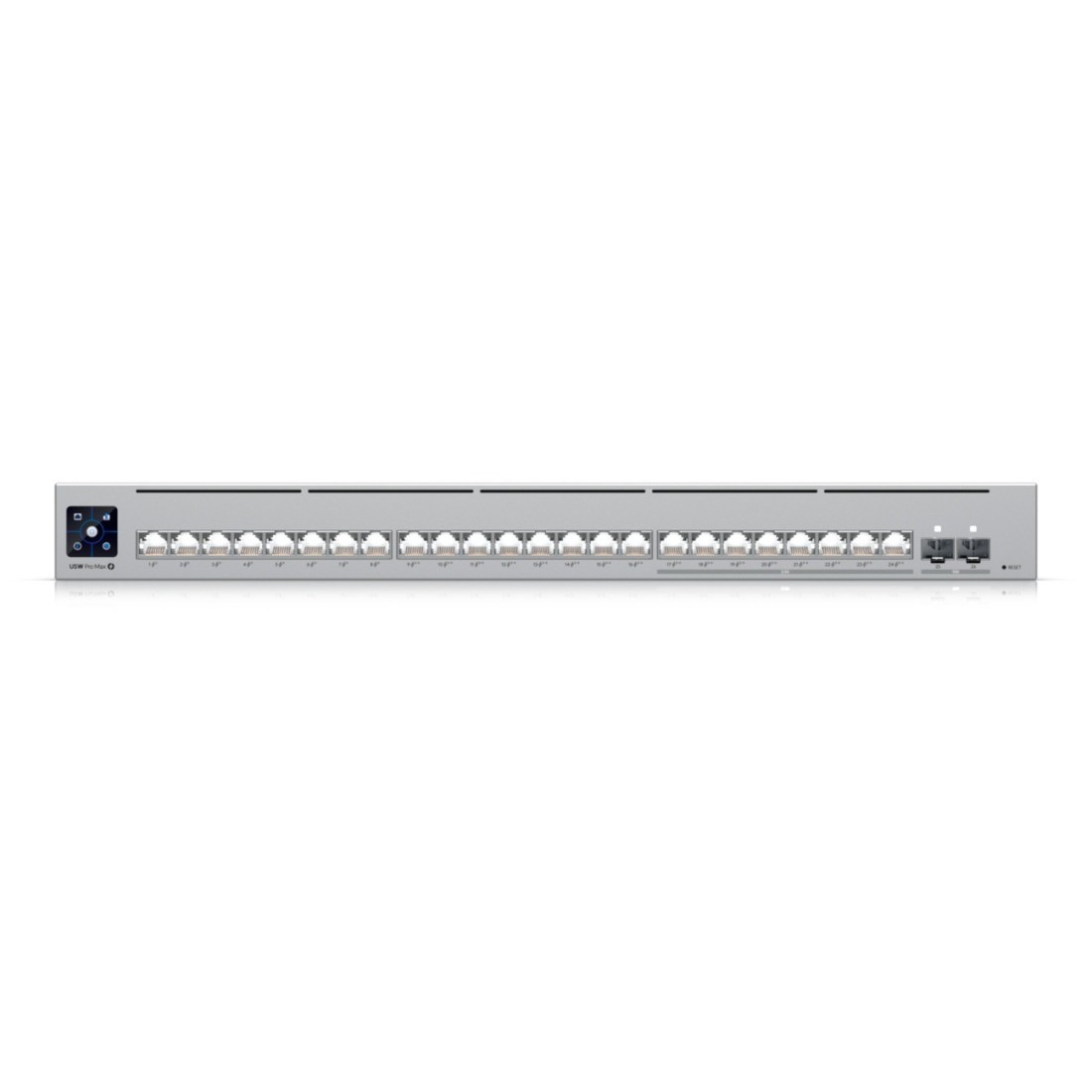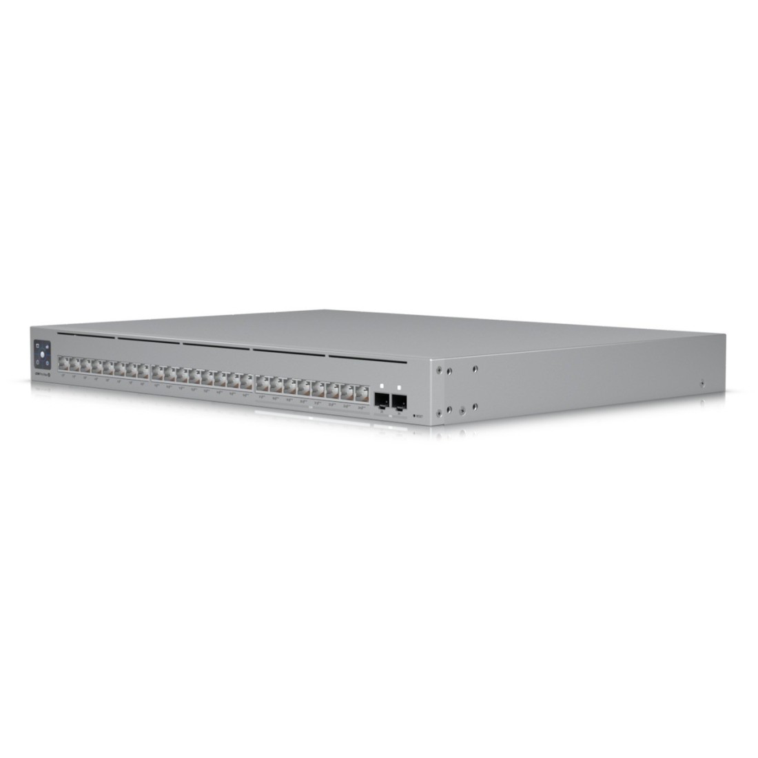 UniFi Switch L3 de 24 puertos: 8x PoE++ 2,5 GbE, 16x GbE (8 PoE+ y 8 PoE++ 400W) y 2x SFP+ 10G. Rack