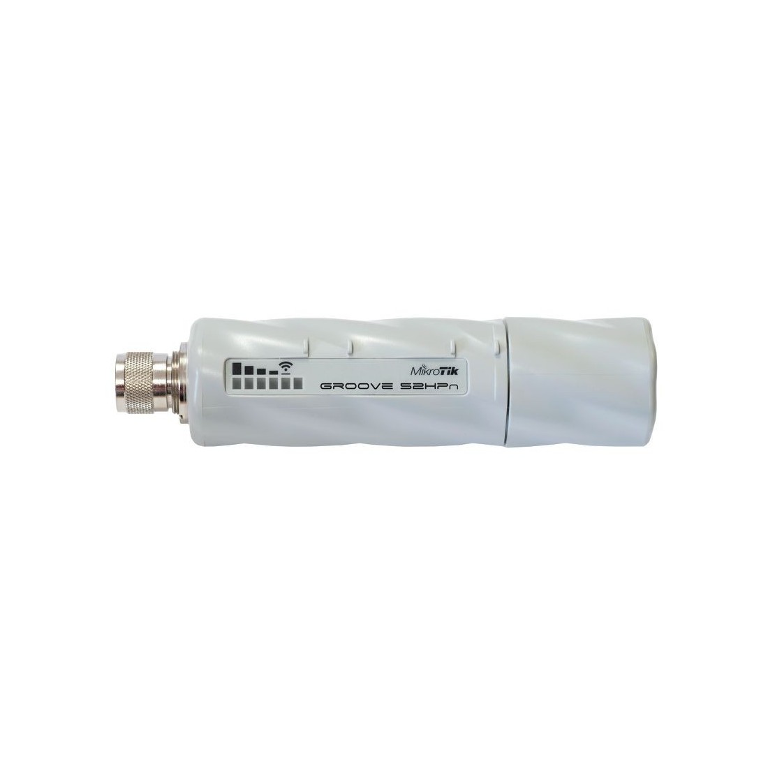 CPE exterior MikroTik Groove 52HPn - Radio seleccionable por software en 2.4 o 5 GHz Conector N-macho integrado, PoE pasivo 9-30 V Sensibilidad hasta -93 dBm y potencia hasta 27 dBm RouterOS L3, CPU AR9342, temperatura -30 a 70 °C Dimensiones: 177 x 44 x 44mm Necesita adaptador POE 24V 0.8A (incluido) Referencia fabricante: RBGroove52HPn