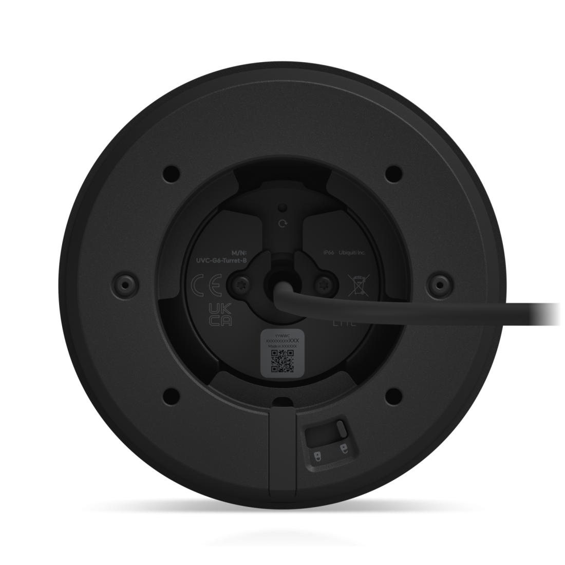Camara IP turret Ubiquiti UVC-G6-Turret-B - 4K 8MP, lente 2.8mm, IR 30m, PoE 802.3af/at, IP66 IK10. Negra