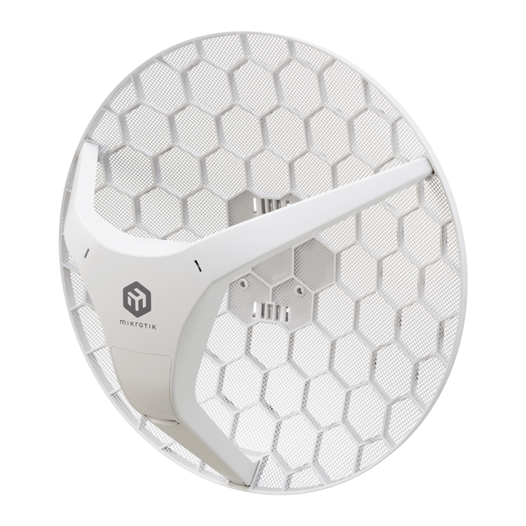 El LHG 5 ax de MikroTik es una solución CPE profesional diseñada para enlaces inalámbricos de largo alcance en la banda de 5 GHz. Incorpora la tecnología Wi-Fi 6 (802.11ax), antena parabólica de 24.5 dBi, y un diseño aerodinámico preparado para condiciones exteriores extremas.