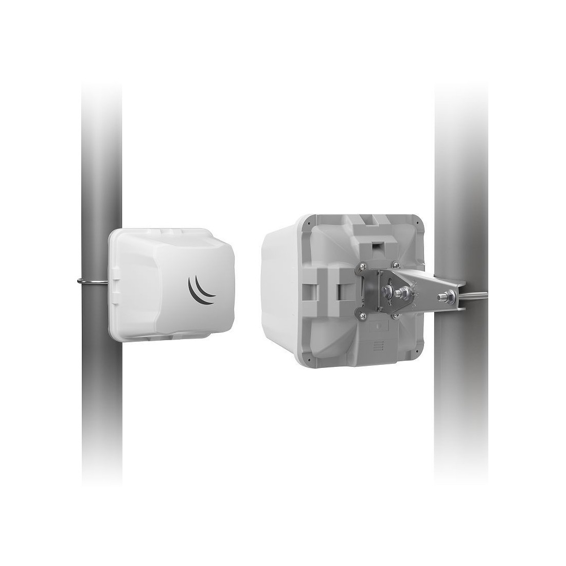 El Kit punto a punto MikroTik Wireless Wire Cube (Product Code CubeG-5ac60adpair) es una solución inalámbrica de alto rendimiento compuesta por dos dispositivos Cube 60G ac preconfigurados. Establece un enlace inalámbrico de hasta 800 metros a velocidad gigabit, utilizando la banda de 60 GHz (802.11ad), con respaldo automático en 5 GHz (802.11ac) para asegurar la disponibilidad continua del enlace.