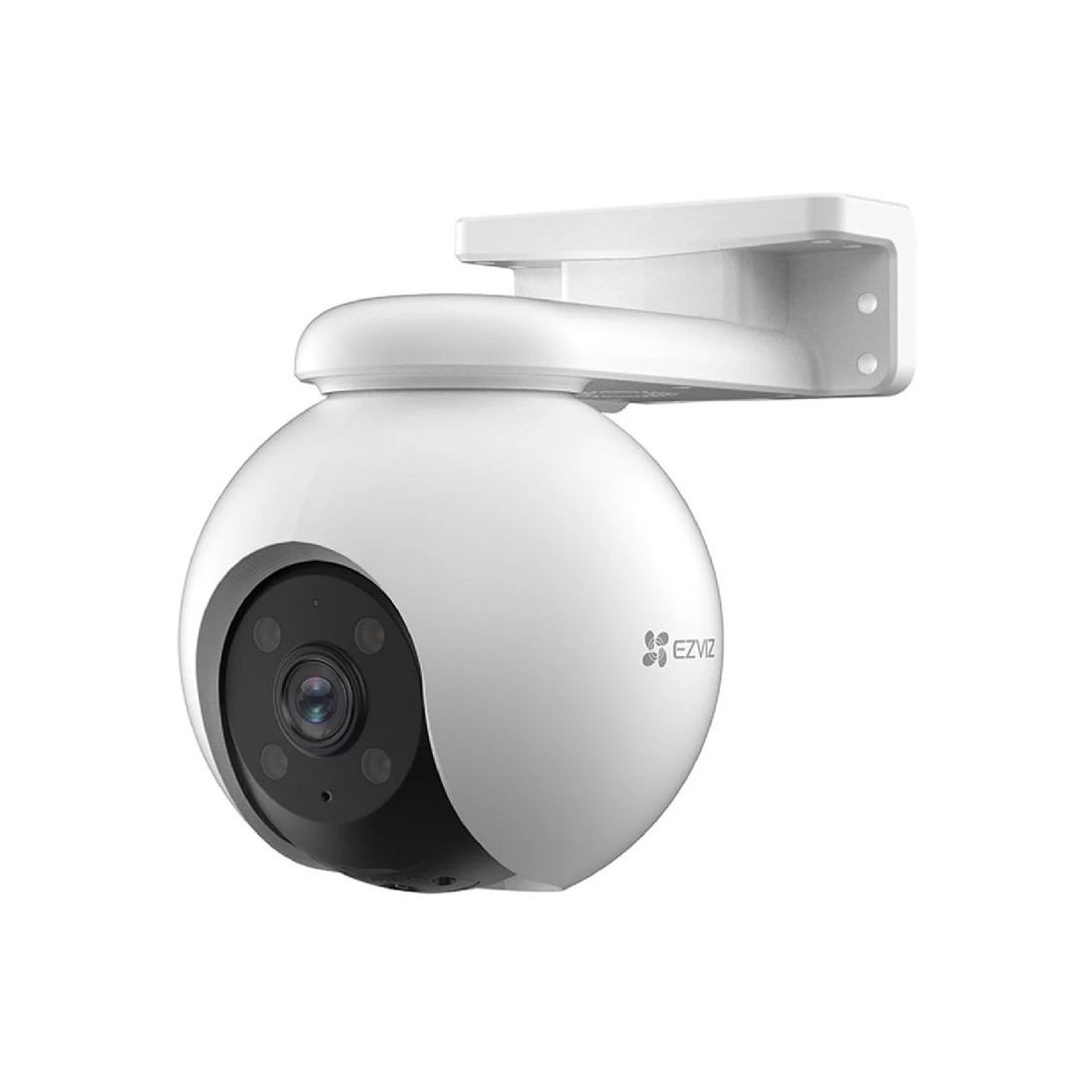 Cámara exterior Wi-Fi EZVIZ H8 Pro 3K (CS-H8-R100-1J5WKFL) Resolución 3 K (2880 × 1620), lente 4 mm F1.6 Pan 340°, Tilt 80° Auto-tracking IA (humano/vehículo), detección por gesto, visión nocturna color hasta 30 m con foco, defensa activa (sirena + spotlights), Almacenamiento micro-SD hasta 512 GB o nube. IP66, control desde app EZVIZ. Referencia CS-H8-R100-1J5WKFL