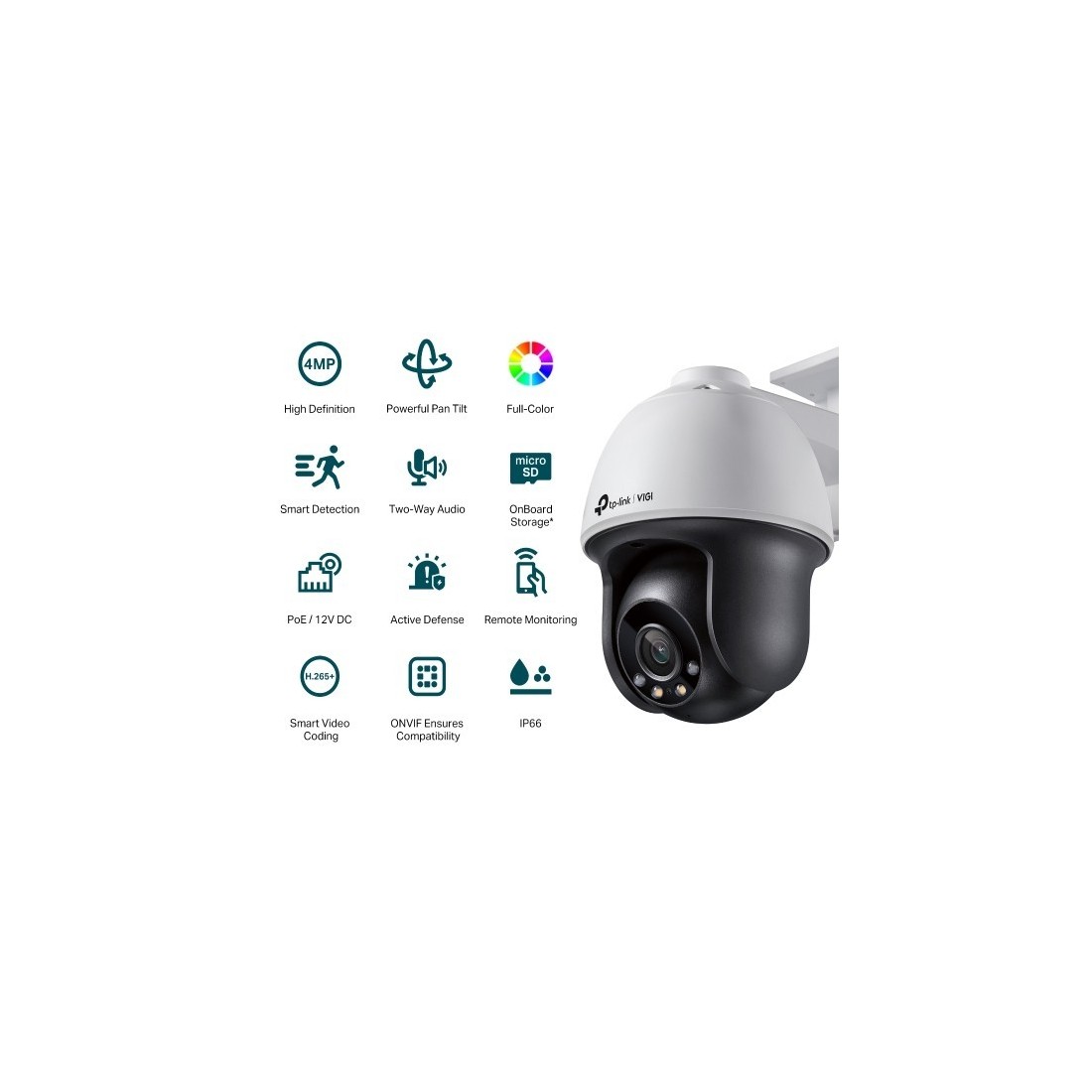 Full Color 24/7. Imagen a todo color en condiciones de total oscuridad. Avanzado Pan&Tilt. Protección IP66. La cámara está herméticamente sellada frente al agua y el polvo para garantizar un alto rendimiento en exteriores. Detección inteligente.
