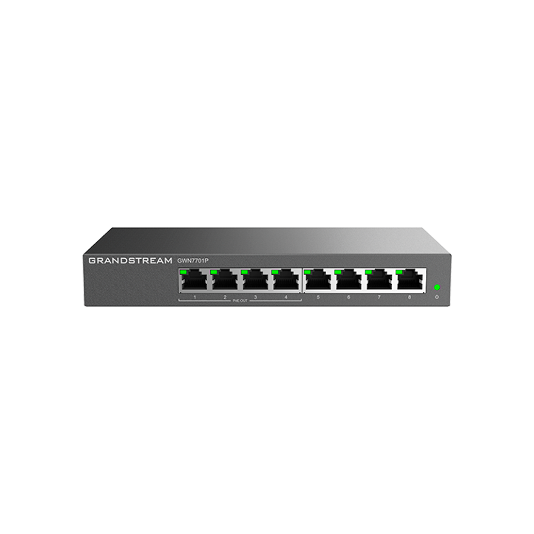 Switch Gigabit PoE+ Grandstream GWN7701P - 8 puertos, 4 PoE+, metal, escritorio pared
