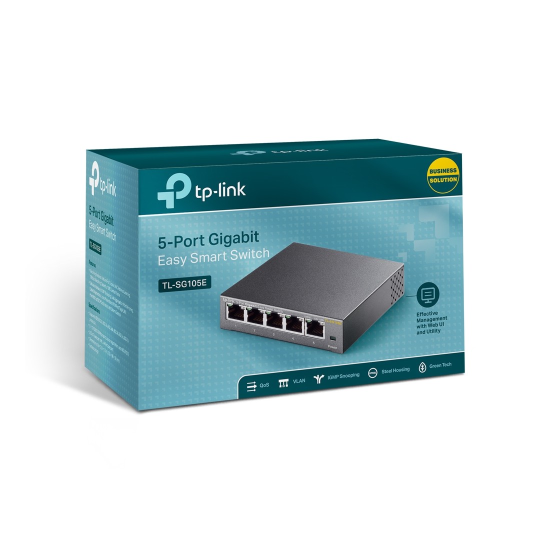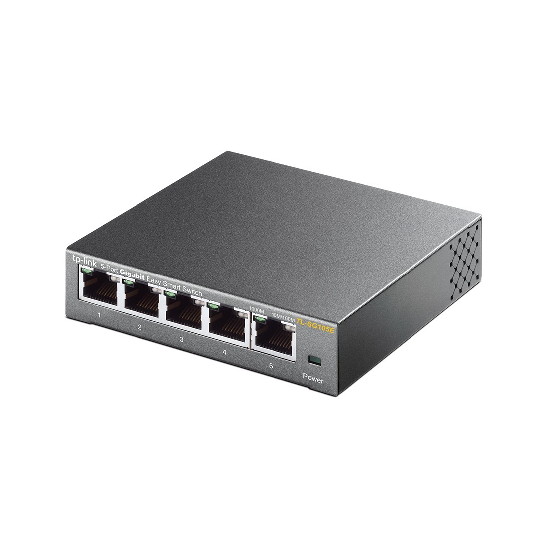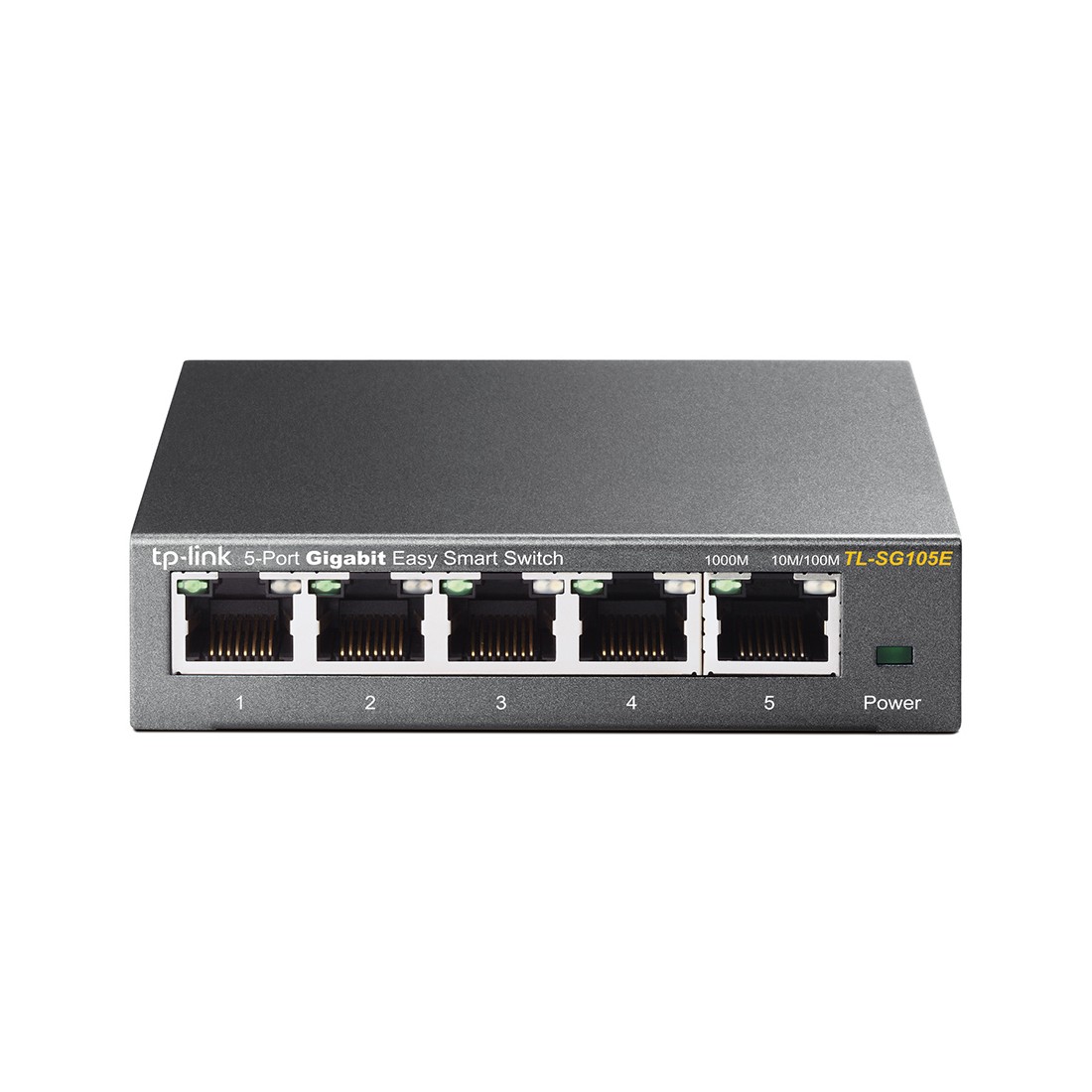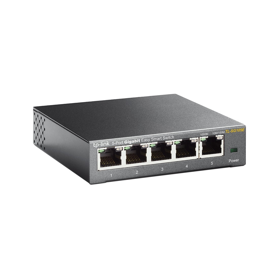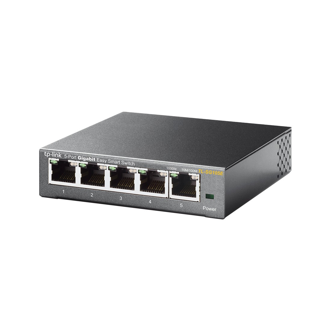 El Switch gestionable TP-Link TL-SG105E es un switch Easy Smart para redes SOHO y pequeña oficina, con 5 puertos RJ45 10/100/1000 Mbps y formato compacto para instalación en sobremesa o pared.