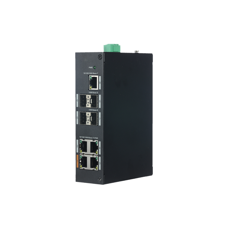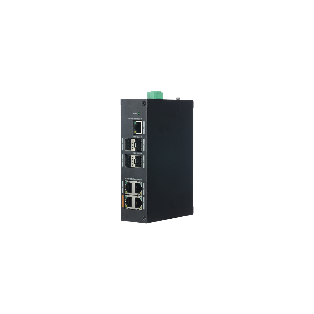Switch de 4 puertos 10/100/1000 POE+ 120W + x1 UPLINK 10/100/1000 + x4 SFP, para montaje en DIN, alimentación DC 48 V