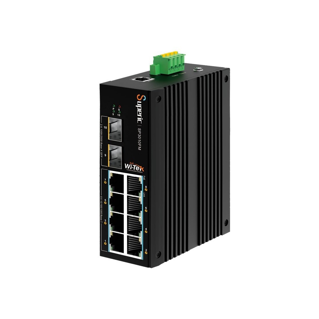 Switch PoE gestionable Wi-Tek de gama industrial 8 puertos PoE 10/100/1000Mbps 2 puertos SFP de 1000/2500Mbps 1 puerto consola Entrega poE total de 240W