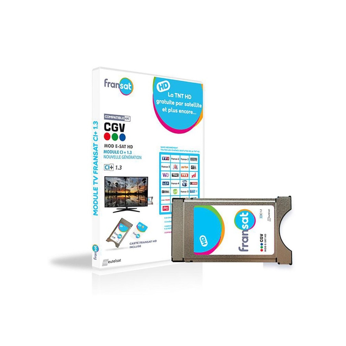 Módulo CAM PCMCIA CGV FRANSAT E-SAT - UHD 4K, satélite, tarjeta incluida