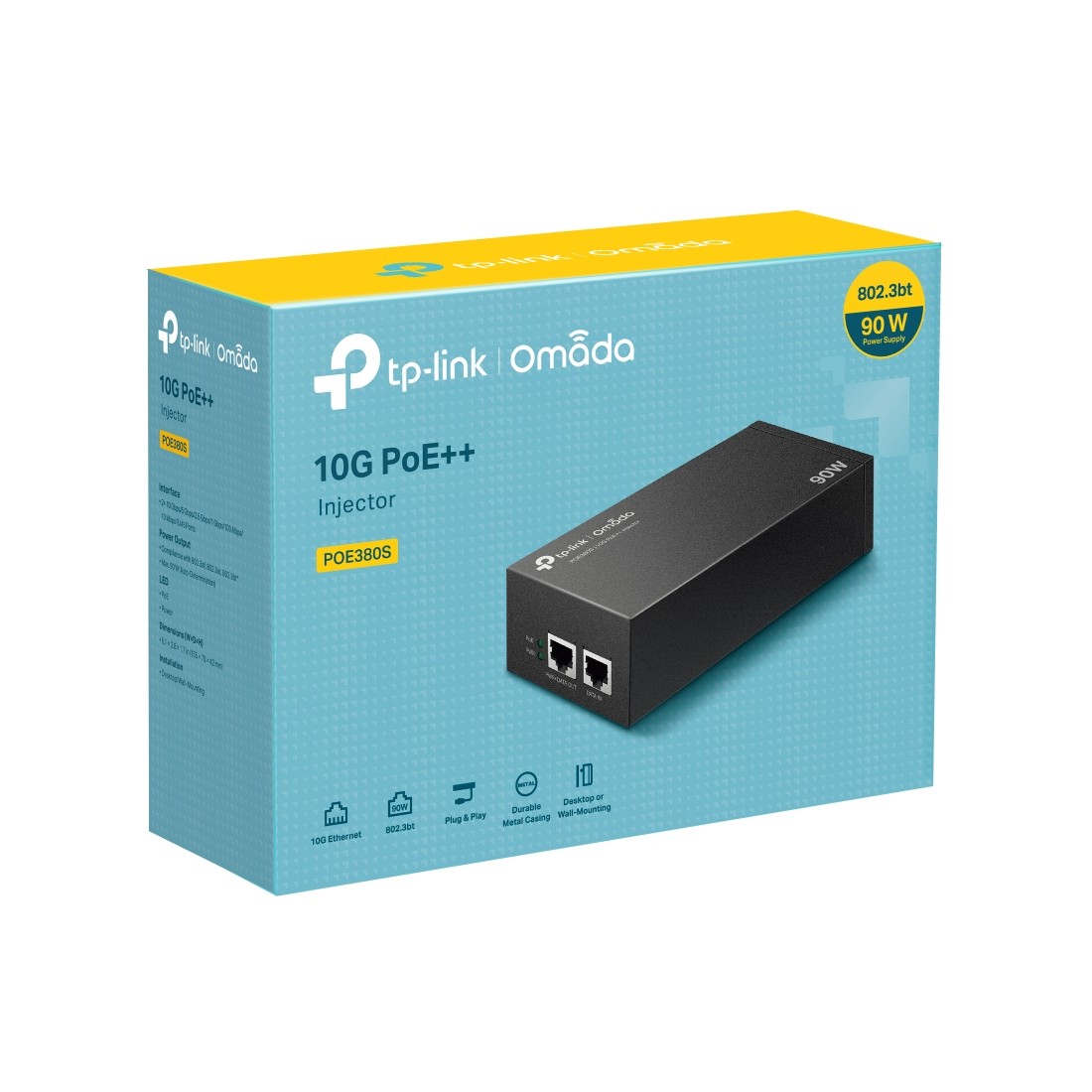 Inyector POE++ IEEE802.3af/at/bt 90W, x2 Puertos 10 Gbps. Montaje pared o sobremesa