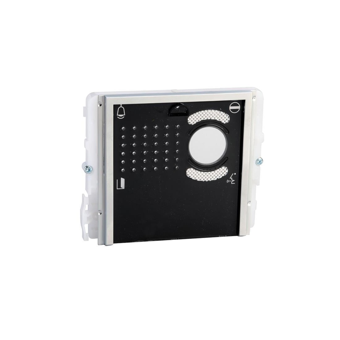 Módulo audio/vídeo sin pulsador, acabado en policarbonato negro. Se tiene que completar con el grupo audio/vídeo necesario, según el sistema de cableado utilizado en la instalación. Dimensiones: 112x89,5x32 mm.