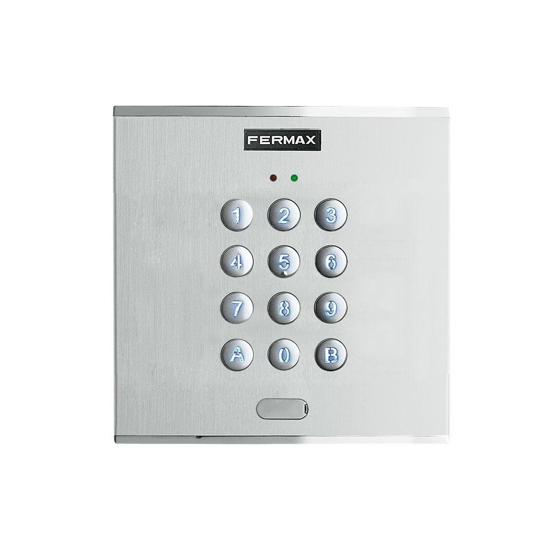 Teclado tipo telefónico que permite la apertura de la puerta al introducir un código de hasta 6 dígitos previamente programado.