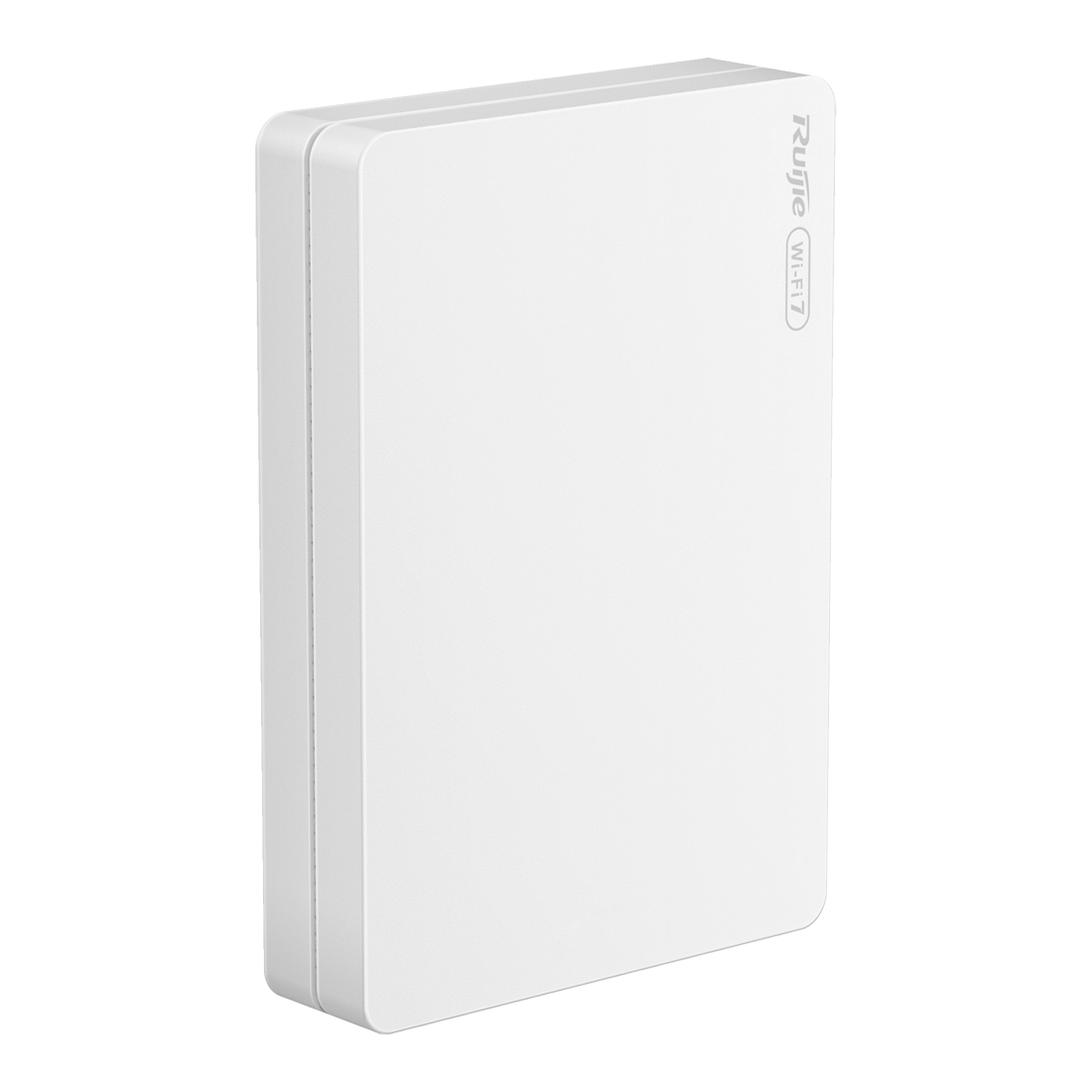 Punto de acceso WIFI 7 BE 2.4/5Ghz para pared (802.11BE) 2.4 GHz,2x2 MIMO 2.84dBi, 20dBm // 5 GHz,3x3 MIMO 4.56dBi 20dBm 1 Puerto 2,5Gbps RJ45, 4 Puerto Gigabit RJ45 L3 ROAMING Dimensiones:124 mm x 86 mm x 24 mm Adaptador POE no incluido Controladora nube Ruijie Cloud