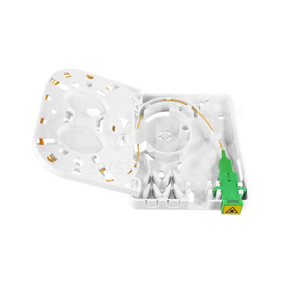 Caja terminal interior FO 2p SC, bandeja fusion, ABS, 82x105x23mm, blanca
