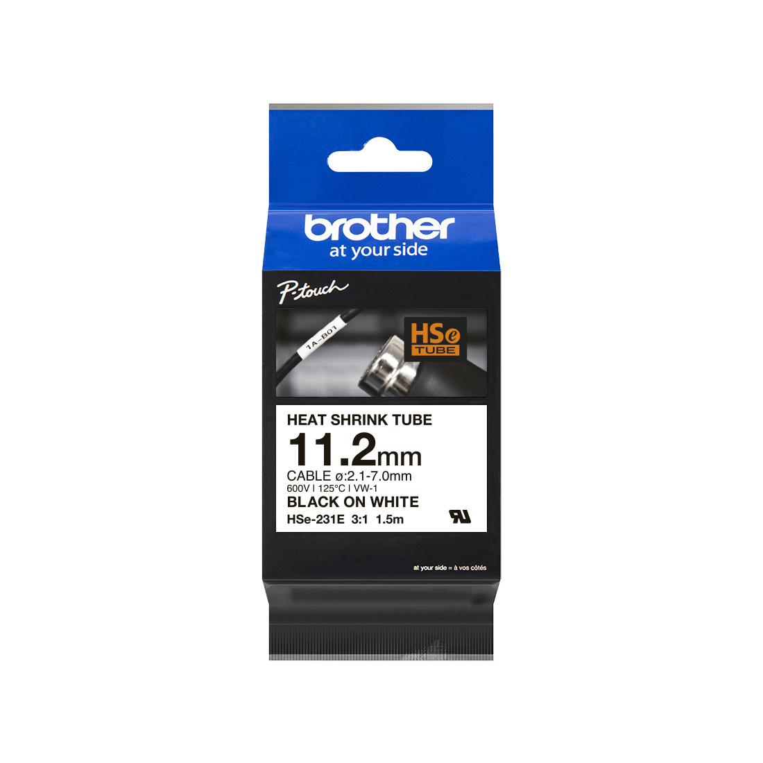 Cinta para tubo termoretráctil, Texto negro sobre fondo Blanco. 11.2mm (1.5mts de largo). Para cables de 2.1 a 7.0mm
