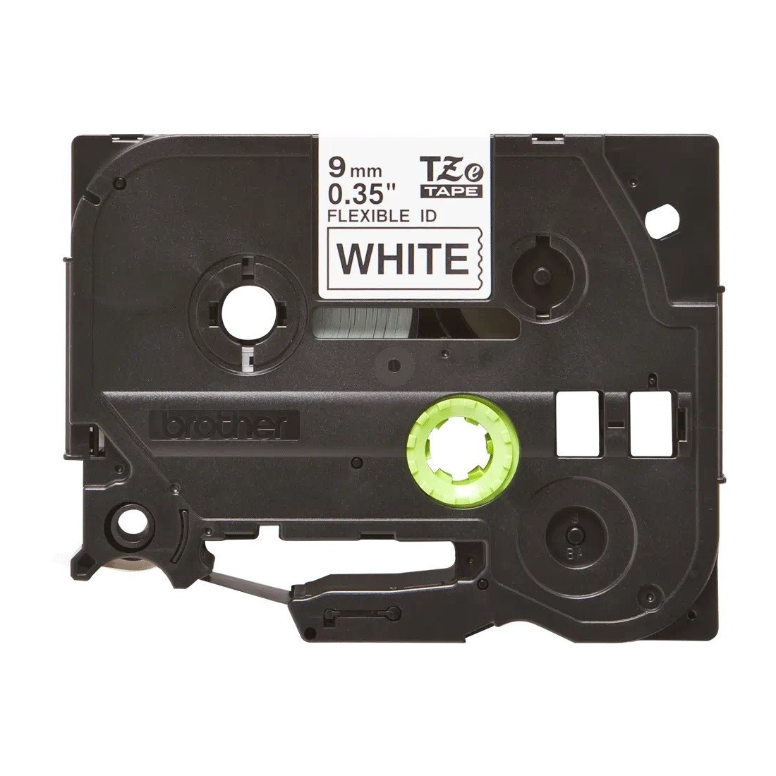 Cinta laminada flexible. Texto negro sobre fondo blanco. Ancho: 9 mm. Longitud: 8 m