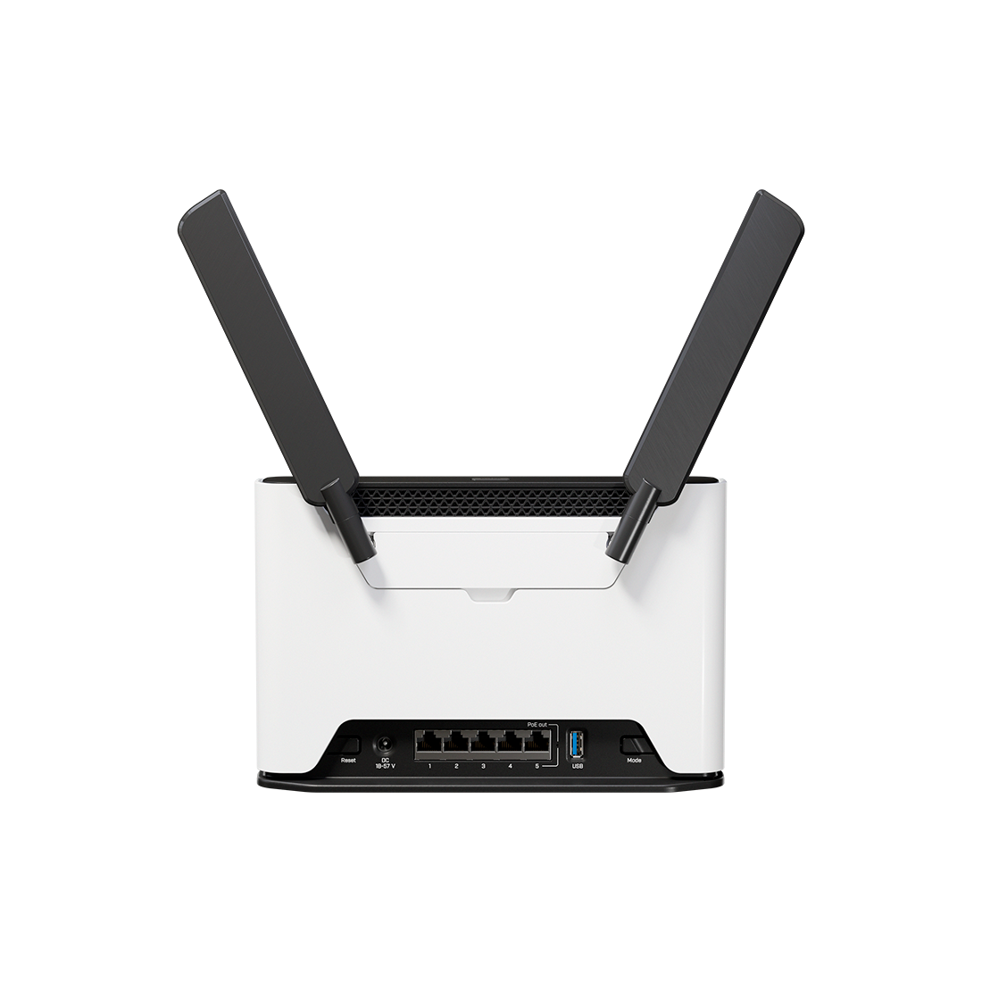 Diseñado para ofrecer una conectividad fluida y veloz, incorpora 5 puertos Gigabit Ethernet, Wi-Fi 6 con 4 antenas 4x4 en bandas de 2.4 GHz (hasta 1148 Mbps) y 5 GHz (hasta 2400 Mbps), PoE-out pasivo en el puerto Ether5 y USB 3.0 tipo A para ampliación o backup. Su funcionamiento es completamente pasivo y silencioso, con refrigeración sin ventiladores.
